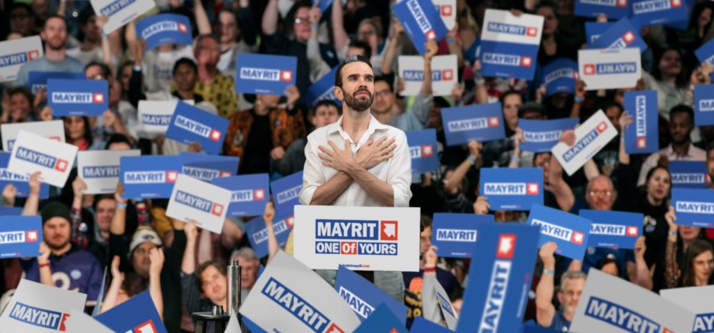 Haciendo uso de diferentes clichés visuales cargados de ironía, Daniel Mayrit se convierte en el líder carismático que personifica en su propia imagen la estrategia y el discurso populistas. De esta manera, este trabajo intenta cuestionar y someter a escrutinio el lenguaje visual empleado por el populismo en la última década, revelando, así, su artificialidad y resortes manipulativos.
