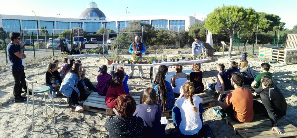 Asimismo, destacar el conjunto de acciones de sensibilización, talleres y jornadas de intervención del proyecto ¡Construyamos la HuertUCA entre tod@s! Proyecto de participación y voluntariado en el huerto ecológico, con el que se ha fortalecido el huerto ecológico universitario que durante el curso académico 2016/2017 echó a andar en una parcela reservada y preparada a tal efecto dentro del Complejo Deportivo del Campus de Puerto Real de la Universidad de Cádiz. Hoy en día se muestra como un importante enclave interdisciplinar en el engranaje de nuestra Universidad. Este espacio integrador de aprendizajes ha alcanzado su objetivo principal: promover la implicación activa de la comunidad universitaria en la conservación de la biodiversidad y los espacios naturales, en tareas de diseño, implementación, comunicación y evaluación de programas y actividades de participación y voluntariado ambiental en el Huerto Ecológico del Campus de Puerto Real, consolidándose así durante este periodo comprendido entre octubre de 2018 y junio de 2019.
