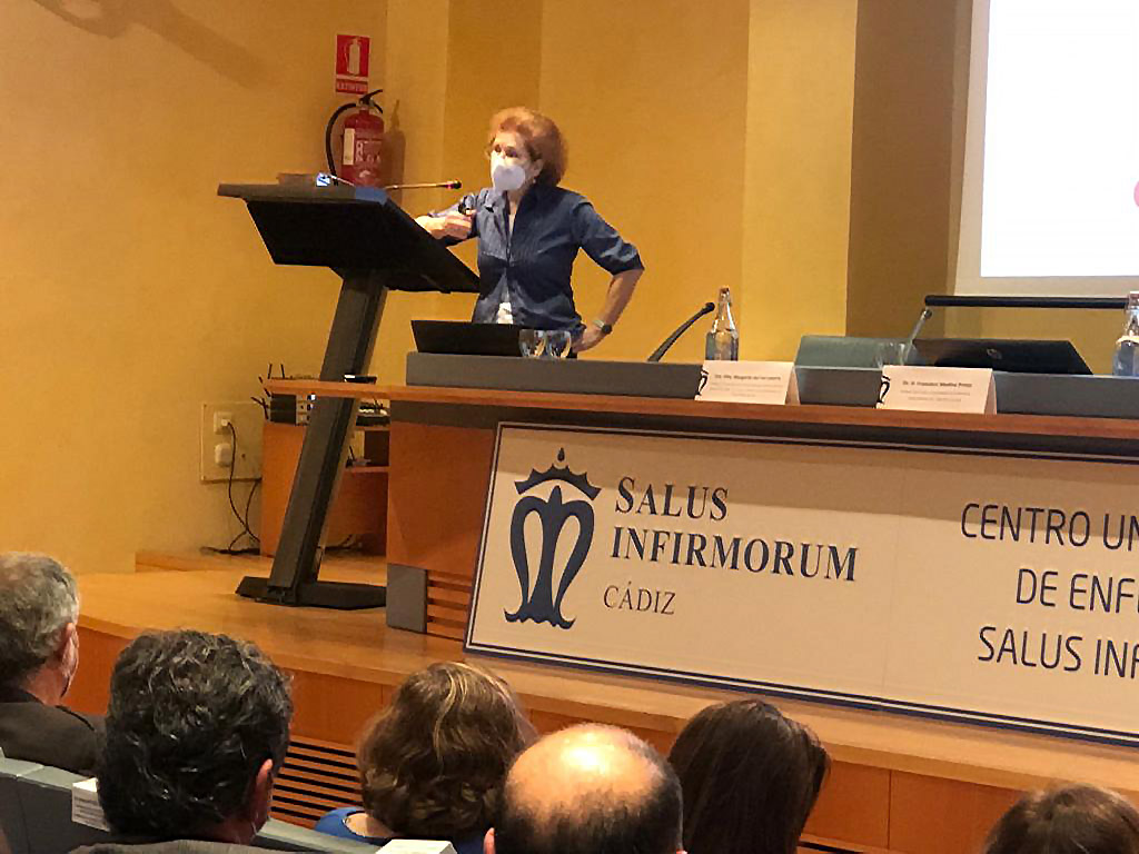 El rector de la UCA, Francisco Piniella, ha dado la bienvenida a este foro en compañía de la delegada territorial de Salud y Familias, Isabel Paredes, y la directora de CUE Salus Infirmorum, Isabel Lepiani. El profesor Francisco Medina ha hecho una breve y emotiva semblanza de la científica, a la que conoció siendo un becario en sus comienzos y con la que comparte una relación profesional desde la investigación y también personal desde entonces. Ha resaltado su humildad y humanidad, así como su capacidad de trabajo y de comunicar la ciencia.