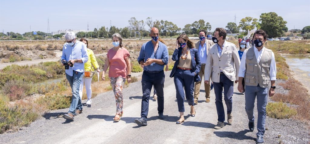 El secretario General de Medio Ambiente, Agua y Cambio Climático de la Junta de Andalucía, José Gutiérrez Rodríguez, acompañado por el delegado territorial de Desarrollo Sostenible en Cádiz, Daniel Sánchez Román, la delegada territorial de Agricultura Ganadería y Pesca en Cádiz, Ana María Bertón Belizón, el director-conservador del Parque Natural Bahía de Cádiz, Rafael Martín Ballesteros, la vicerrectora de Política Científica y Tecnológica de la Universidad de Cádiz, María Jesús Mosquera, el director General de Recursos Científicos, Félix Ruiz, el director de los Servicios Centrales de Investigación en Salinas (Salinas la Esperanza) de la UCA, Alejandro Pérez, y representantes del equipo técnico del parque y de la UCA , ha participado en una jornada celebrada en las instalaciones de La Salina La Esperanza en el Parque Natural Bahía de Cádiz (Puerto Real) en el marco del Día Mundial del Medio Ambiente. También han asistido representantes de varias empresas, entidades y asociaciones como Bodegas Barbadillo y Ecologistas en Acción, así como voluntarios.