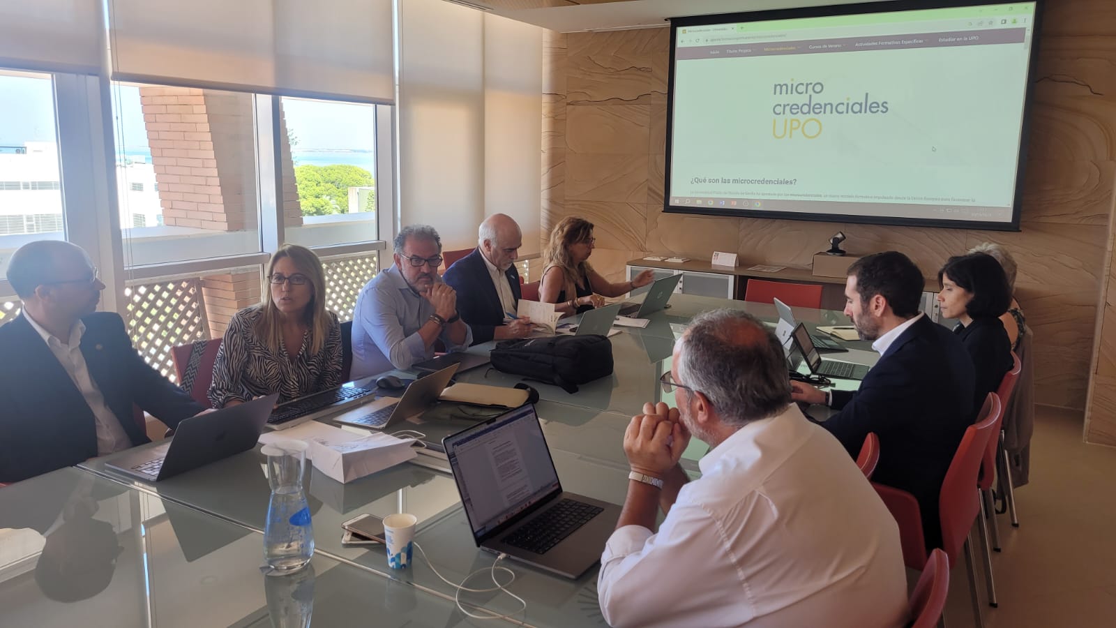 En tercer lugar, se ha celebrado la reunión relativa a las Microcredenciales con la participación de responsables de las diferentes universidades públicas andaluzas en materia de Política Educativa. El director General de Política Educativa de la UCA, Juan Manuel Piñero, les ha dado la bienvenida, quien ha explicado que la Universidad de Cádiz lleva años impartiendo los Títulos Propios, que serían los precursores de las microcredenciales: un nuevo modelo formativo impulsado desde la Unión Europea para favorecer la inclusión y la igualdad de oportunidades, facilitar el acceso a la educación, la formación y las oportunidades profesionales. Certifican los resultados obtenidos en experiencias de aprendizaje de corta duración.