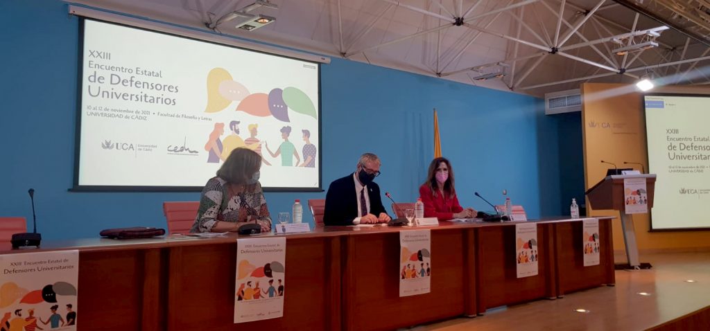 Para el rector de la UCA, que ha dado la bienvenida a todos los asistentes al encuentro a “una ciudad defensora de los valores democráticos de la libertad y de la justicia y cuna de constitucionalismo y de derechos”, ahora, tras meses de espera, “recobramos una normalidad y lo hacemos con la responsabilidad de no caer en descuidos y el compromiso de seguir con nuestra misión docente, científica, divulgativa y de transferencia del conocimiento. No pudimos celebrar este encuentro en su momento, pero –ha añadido- somos conscientes de que cada situación crítica requiere todavía más del contrapeso de figuras como las defensorías universitarias para amortiguar las desigualdades y atender las peticiones y reclamaciones de nuestras comunidades universitarias”.