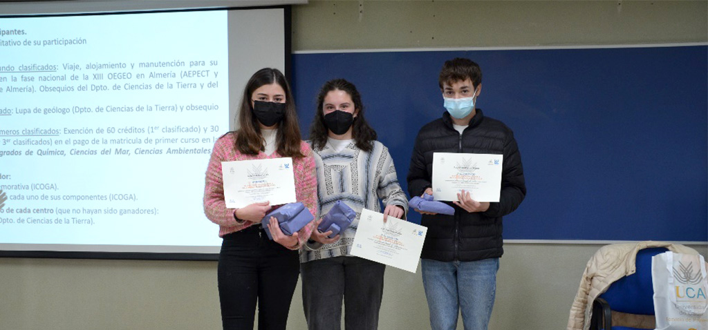 Los participantes y ganadores recibieron obsequios aportados por el Vicerrectorado de Estudiantes y Empleo, de la Facultad de Ciencias del Mar y Ambientales de la UCA, el Colegio Oficial de Geólogos de Andalucía (ICOGA) y el propio departamento de Ciencias de la Tierra.