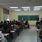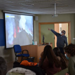 A continuación, se desarrolló la prueba teórica individual. Tras un desayuno, los estudiantes pasaron a realizar los dos ejercicios prácticos en equipos de cuatro componentes, que consistieron en el reconocimiento de visu de rocas y minerales y en la reconstrucción de una historia geológica de una zona a partir de la representación de un corte geológico. La jornada se completó con la conferencia Los paisajes volcánicos en España, impartida por el profesor de Ciencias de la Tierra, Francisco Javier Gracia Prieto.