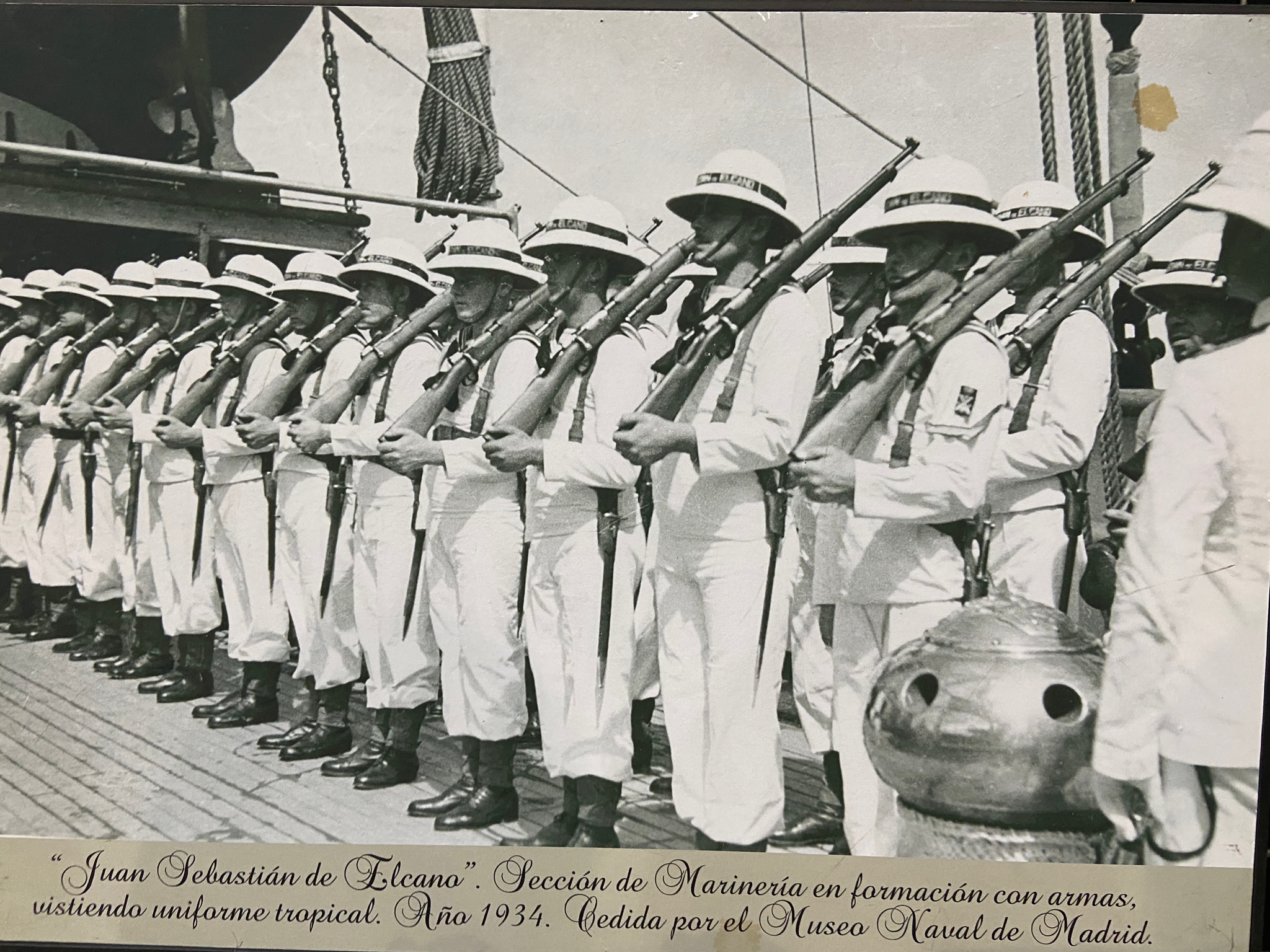 La exposición contiene fotos y documentos históricos procedentes de archivos navales y aportaciones privadas. Comenzó su recorrido en 2013, y hasta ahora, exceptuando la pandemia, ha pasado por más de 30 recintos expositivos, civiles y militares ubicados en distintos puntos de España. Su promotor es el periodista Jerónimo Martínez, impulsor de la Asociación Amigos del Elcano.
