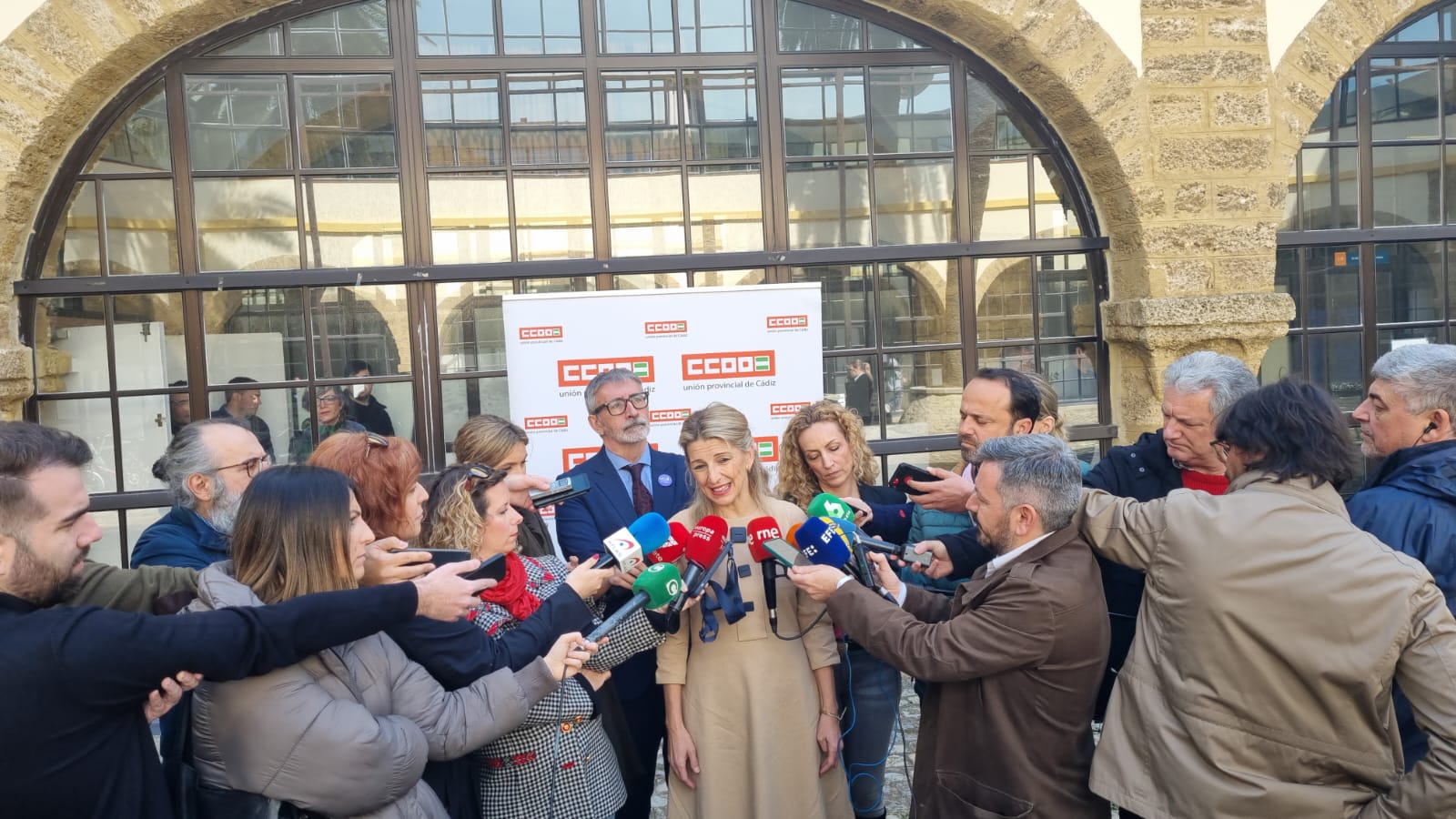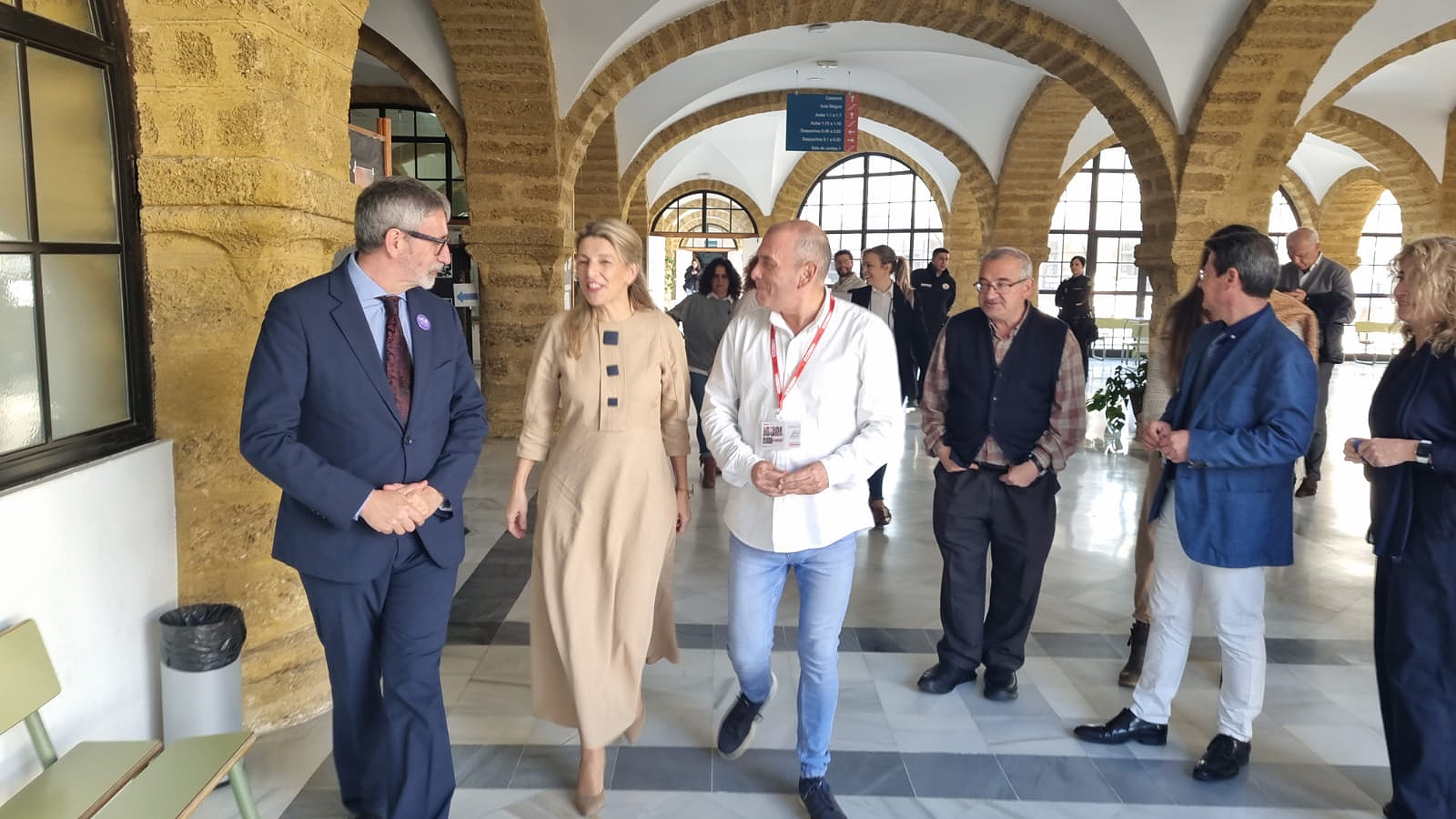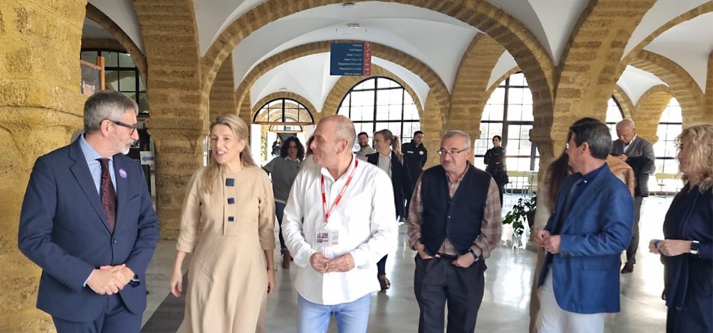 La Universidad de Cádiz acoge hoy, en su Facultad de Filosofía y Letras, la jornada Igualdad y Empleo de Comisiones Obreras (CCOO) en Cádiz. La vicepresidenta del Gobierno de España y y ministra de Trabajo y Economía Social, Yolanda Díaz, ha presidido el acto inaugural en compañía del rector de la UCA, Francisco Piniella, del secretario General de CCOO Confederal, Unai Sordo, la secretaria General de CCOO-A, Nuria López, y la secretaria General de U.P. de CCOO Cádiz, Inmaculada Ortega.
