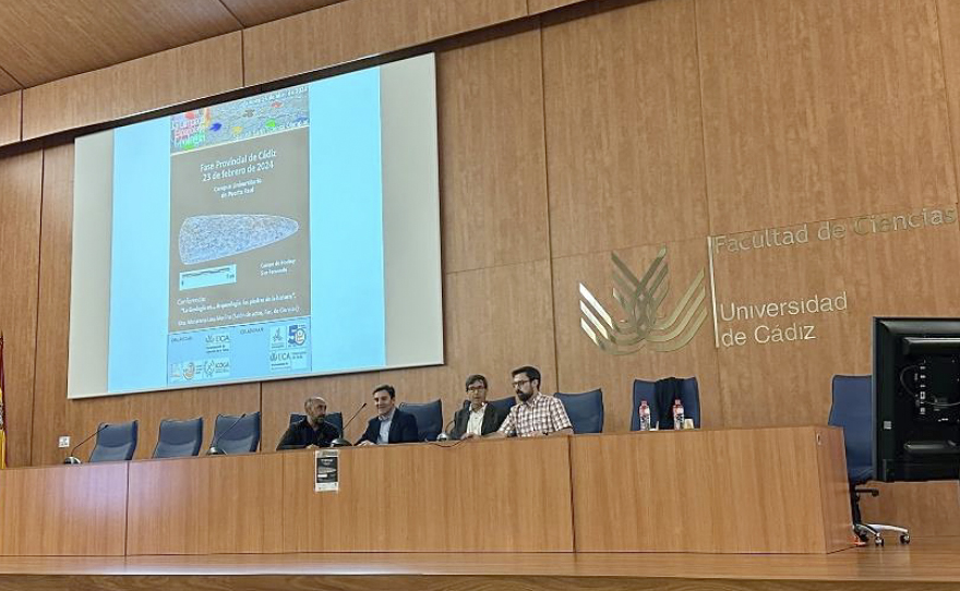 A continuación, se desarrolló la prueba teórica individual. Tras un desayuno, los estudiantes pasaron a realizar los dos ejercicios prácticos en equipos de cuatro componentes, que consistieron en el reconocimiento de visu de rocas y minerales y dar respuesta a cuestiones a partir de la interpretación de un bloque diagrama. La jornada se completó con la conferencia La Geología en… Arqueología: La historia de las piedras, impartida por la profesora del departamento de Historia, Geografía y Filosofía de la UCA, Macarena Lara.