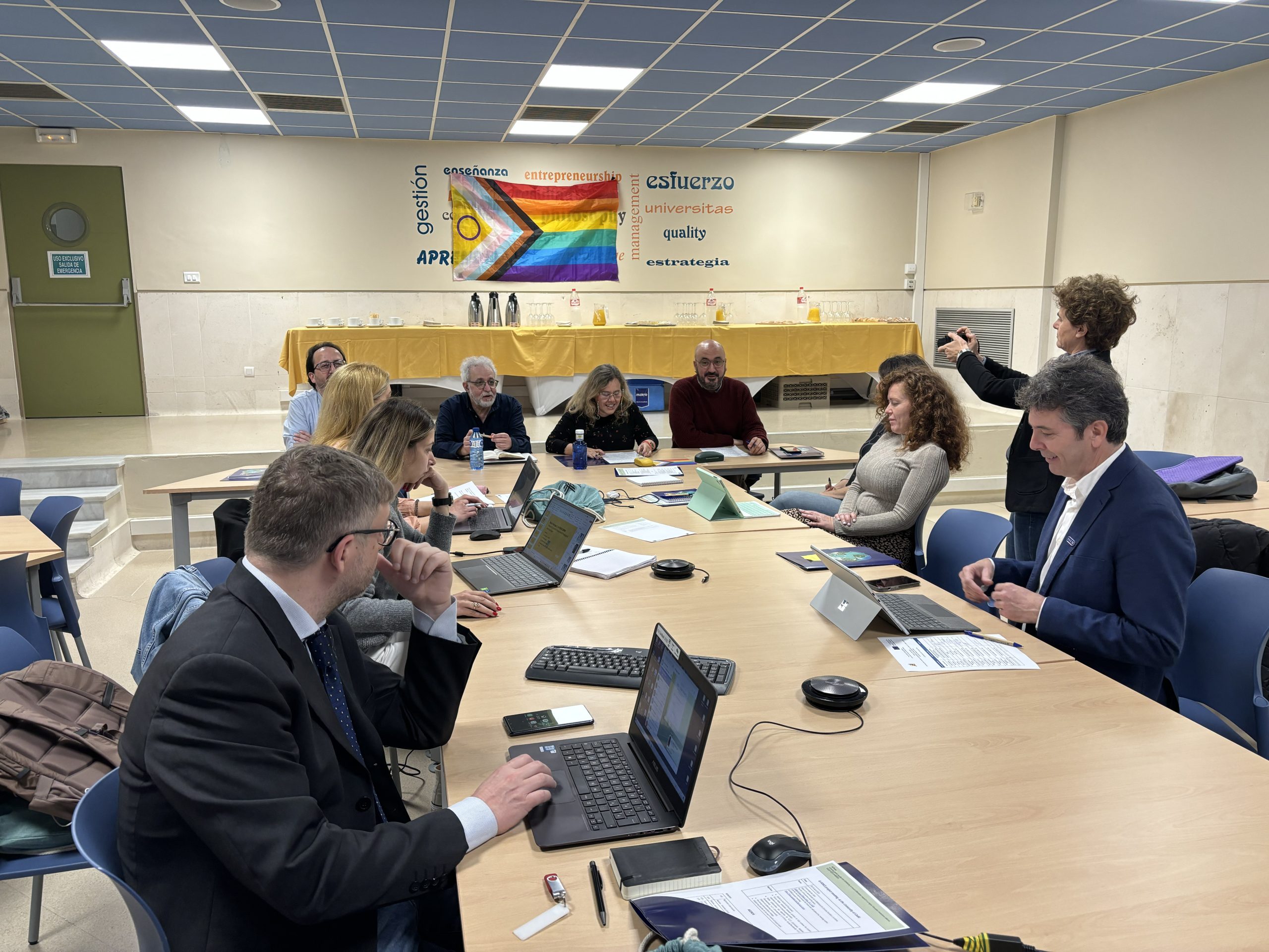 El director General de Diversidad de la Universidad de Cádiz, Antonio Zayas, acompañado de la investigadora principal del proyecto en la UCA y directora del Observatorio DIVERSACI, Begoña Sánchez, ha dado la bienvenida a las jornadas del proyecto de asociación de cooperación del programa Erasmus + ‘G-FORCE’ (enForcing gender equality and cOntributing to sexual oRientation respeCt in a higher Education institutions Alliance) para fomentar la igualdad de género y contribuir al respeto de la orientación sexual en una alianza de instituciones de enseñanza superior. La Facultad de Ciencias Económicas y Empresariales del Campus de Cádiz ha acogido estos días esta reunión trasnacional de Cooperación Internacional.