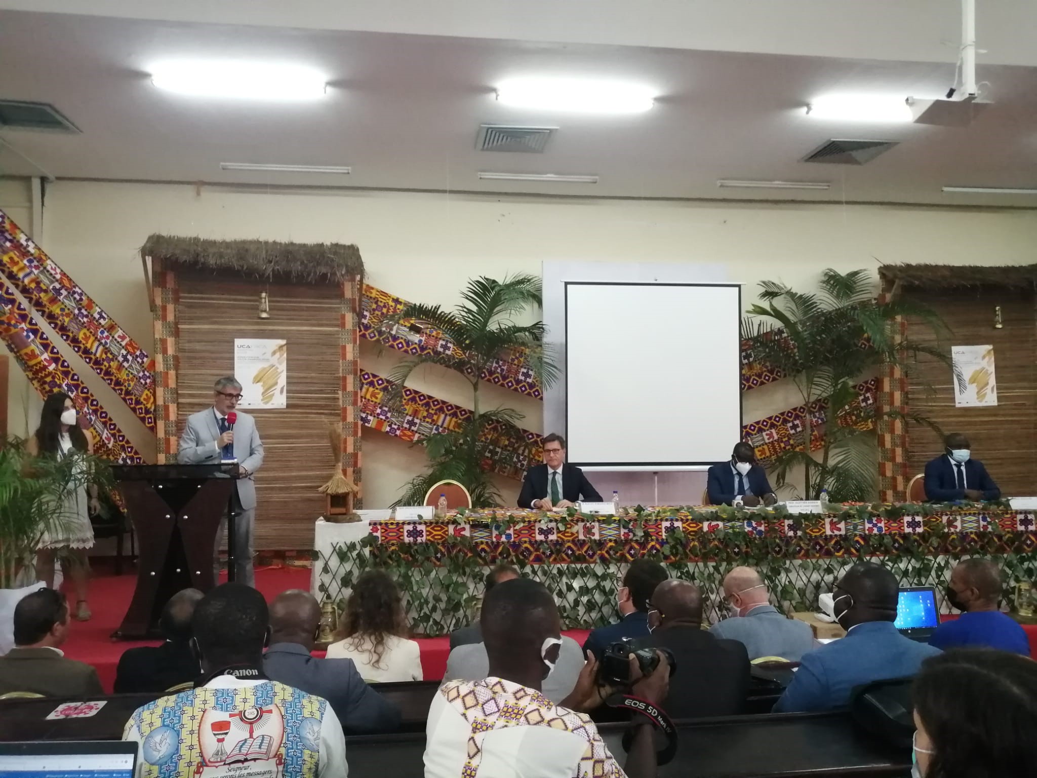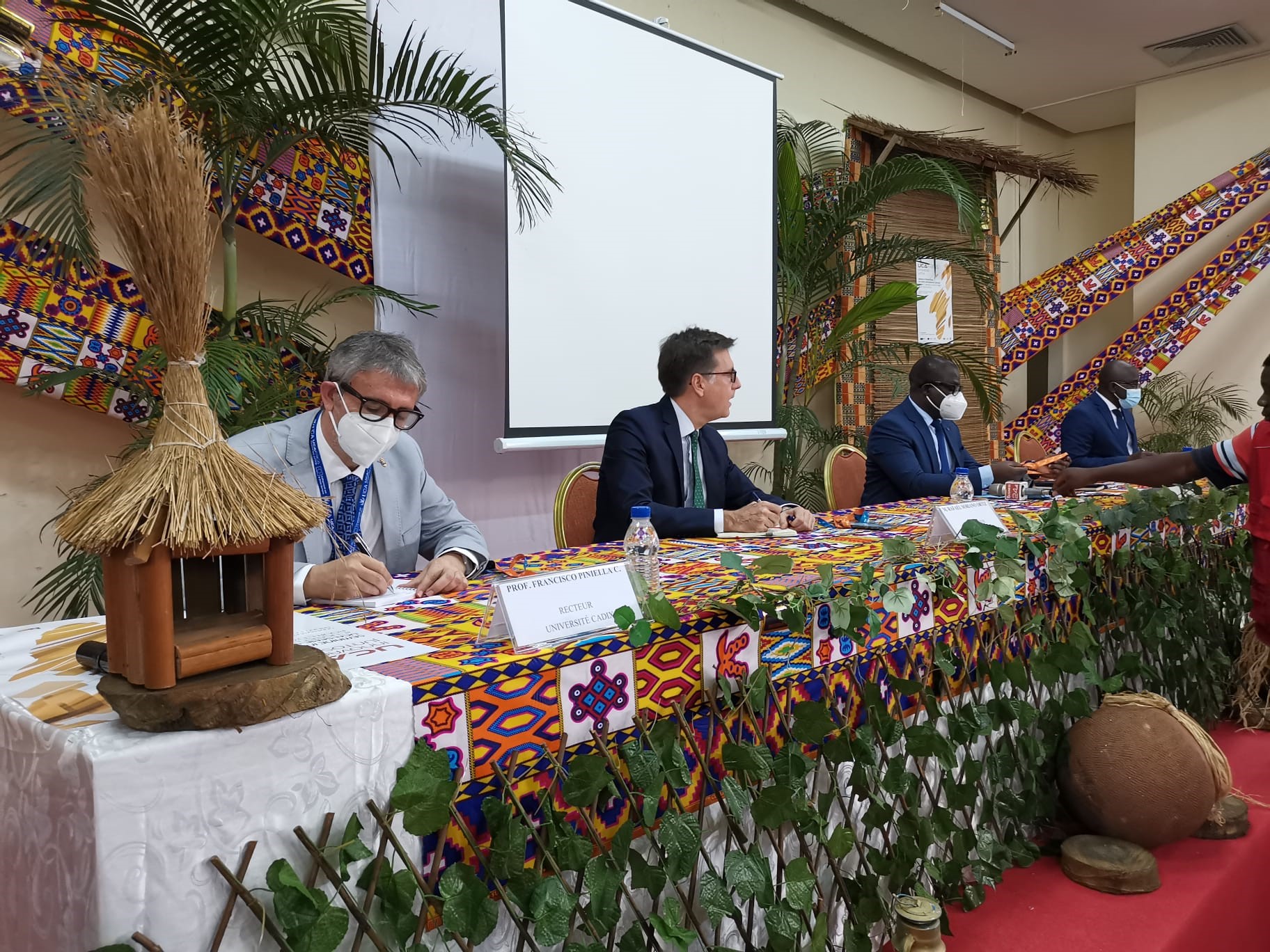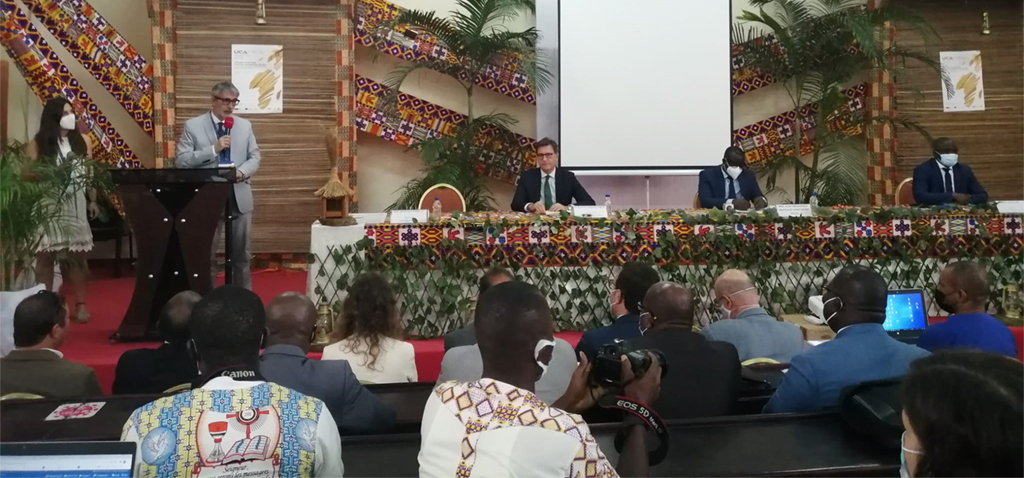 El acto inaugural, que ha tenido lugar esta mañana en el salón de actos de la Universidad Félix Houphouët Boigny (UFHB) con la presencia de más de 200 representantes de distintas universidades, ha contado con la participación, junto al rector y al vicerrector de Internacionalización de la UCA, de Adama Diawara, ministro de Enseñanza Superior e Investigación Científica de Costa de Marfil, de Balló Zié, rector de la UGHB, de Rafael Soriano, embajador de España en Costa de Marfil, de M. Alfonso Gentil, director del Servicio Español para la Internacionalización de la Educación (SEPIE) y de Ehouan Éhile, ex secretario general de la Asociación de Universidades Africanas.