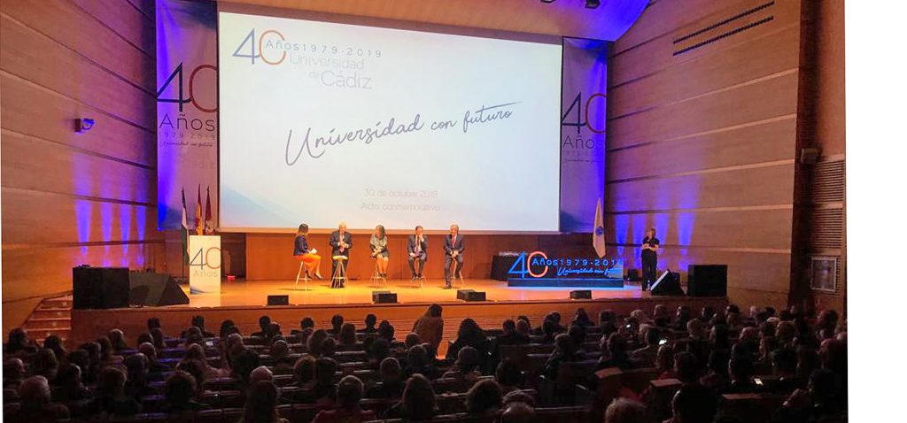 Alrededor de 700 personas han llenado el auditorio del Palacio de Congresos de Cádiz para asistir a la celebración de las primeras cuatro décadas de la Universidad de Cádiz desde su creación. Por este motivo, el acto conmemorativo de la efeméride del 40º aniversario, cuyo lema dice Una universidad con futuro, arranca hoy 30 de octubre recordando la promulgación de la ley de creación de la UCA ese mismo día de 1979. La comunidad universitaria y la sociedad gaditana han podido participar en un evento lleno de emociones, donde la institución y las personas que la conforman han sido sus protagonistas.
