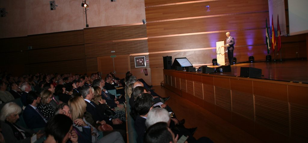 De este modo, la comisión organizadora del 40º aniversario de la UCA ha organizado un acto social y conmemorativo al que se ha invitado a la comunidad universitaria (Personal Docente e Investigador, Personal de Administración y Servicios y alumnado), así como a representantes de todas las instituciones, empresas y asociaciones con las que la Universidad de Cádiz ha trabajado en este tiempo. En el mismo, se ha proyectado el vídeo del 40º aniversario y se ha hecho un recorrido por las primeras cuatro décadas de existencia de nuestra Universidad, un repaso a cómo fueron sus inicios y su evolución con las intervenciones de cuatro claustrales de aquel tiempo que junto a la conductora del evento, la periodista Socorro López, han contado sus vivencias: Felipe Garrido García (presidente comisión gestora), María Julia Cano Valero (Personal Docente Investigador), Ricardo Chamorro Rodríguez (Personas de Administración y Servicios) y Jesús Lucrecio Fernández Delgado (Estudiantes).