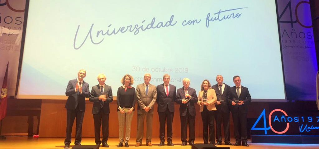 Y en tercer lugar, se han reconocido a distintas personalidades y responsables institucionales con la puesta en valor del trabajo desarrollado durante su historia. Desde el Consejo Social de la Universidad, a través de sus cinco presidentes: Cándido Velázquez-Gaztelu, Augusto Delkáder, Manuel Morón, Ana Alonso y Prudencio Escamilla. Las instituciones colaboradoras: la Universidad de Sevilla, la Confederación de Empresarios de la Provincia de Cádiz, la Diputación de Cádiz, los ayuntamientos de Algeciras, Cádiz, Jerez y Puerto Real, el Gobierno de España y la Junta de Andalucía. Hasta sus seis rectores: Felipe Garrido, Mariano Peñalver, José Luis Romero Palanco, Guillermo Martínez Massanet, Diego Sales y Eduardo González Mazo, a los que el rector actual, Francisco Piniella, ha tenido en primer lugar en sus agradecimientos en el discurso que clausuró el acto. Concretamente, ha reivindicado la labor “de todos los rectores españoles, que siempre han sido, hemos sido, unos peleones, que hemos defendido nuestra universidad”.