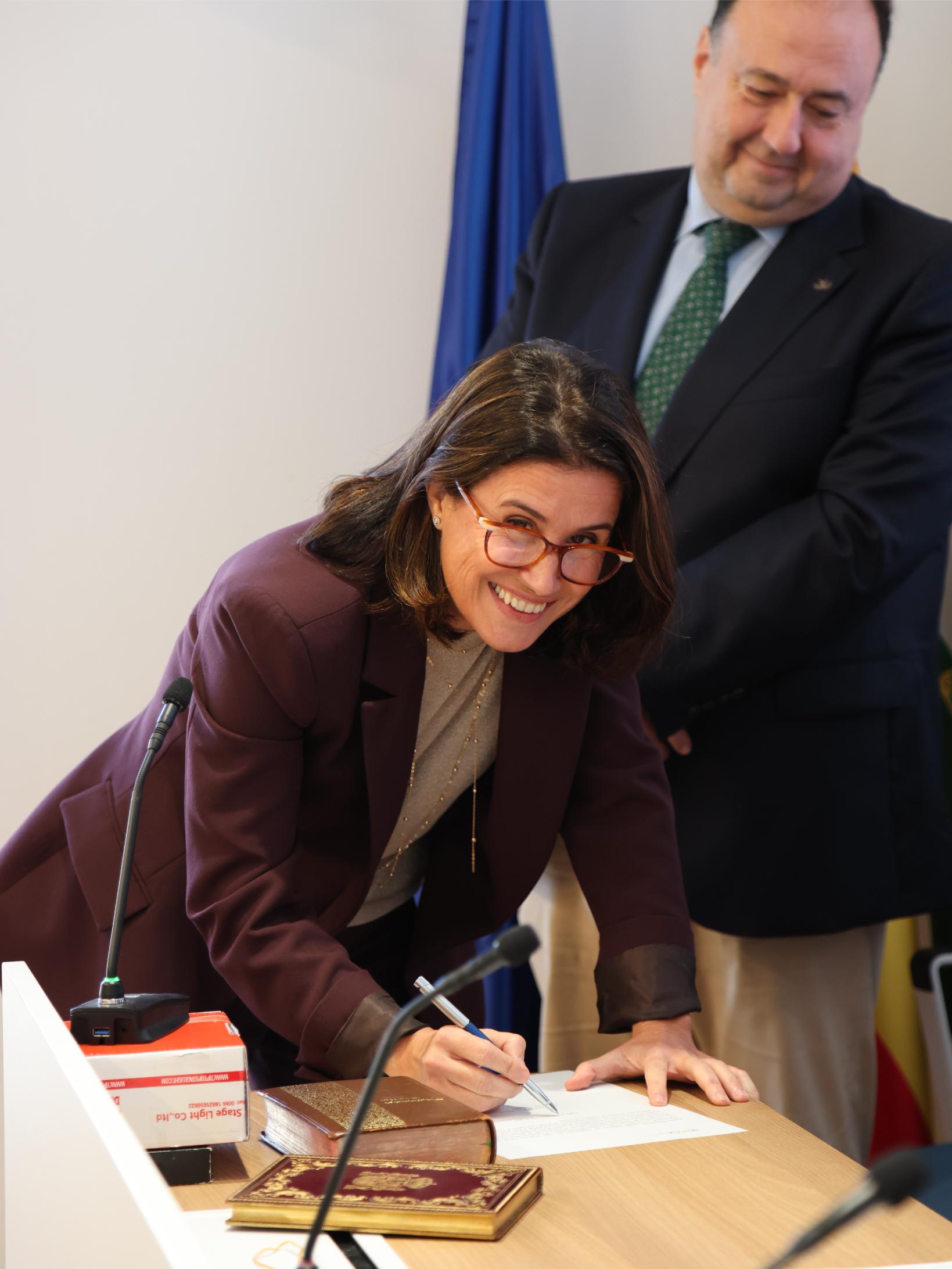 En esta sesión institucional, han tomado posesión como funcionarios de carrera, en la Escala Técnica de Gestión, especialidad Informática, José Ignacio Cubiella, Ismael Jerez y Miguel Ángel Pérez. Asimismo, en la Escala de Ayudante de Archivos, Bibliotecas y Museos, han accedido a sus puestos María Inmaculada Palacios y Lourdes Núñez.