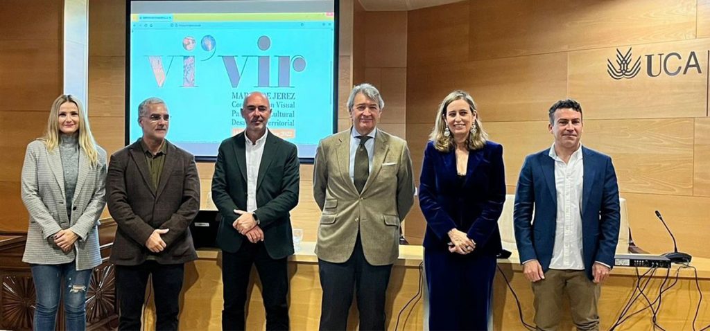 El grupo de investigación Transformaciones y Conflictos en las Sociedades Contemporáneas (SEJ-657) de la Universidad de Cádiz, el Instituto Universitario para el Desarrollo Social Sostenible (INDESS) y el Instituto de Investigación Vitivinícola y Agroalimentario (IVAGRO) organizan el Simposio Internacional Vi’vir Marco de Jerez. La vicerrectora de Política Científica y Tecnológica de la UCA, Mª Jesús Mosquera, ha presidido el acto inaugural acompañada por el director del Instituto de Desarrollo Social y Sostenible (INDESS), Manuel Arana, la coordinadora de la Comisión de Visualización Divulgación e Internacionalización del INDESS y representante del Comité Organizador, Belén Macías, el profesor Joao Fernando Igansi Nunes, investigador de la Universidad Federal de Pelotas UFPEL de Brasil, y el catedrático de Sociología, Beltrán Roca, en el salón de Grados Manuel Asenjo del Campus de Jerez.