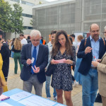 El Campus de Jerez de la Universidad de Cádiz celebra hoy, de 9,45 horas a 18 horas, la II Feria Más allá del aula. Un encuentro que tiene como objetivo informar sobre todas las actividades que se realizan en este espacio universitario, con la idea de crear comunidad y ampliar la vida universitaria. El rector de la Universidad de Cádiz, Francisco Piniella, en compañía del decano de Ciencias Sociales de la Comunicación, José Antonio López, el vicedecano de Proyección y Recursos de la Facultad de Derecho, Antonio Díaz, y el delegado de Reactivación Económica, captación de Inversiones, Educación y Empleo del Ayuntamiento de Jerez, Juan Antonio Cabello, han realizado una visita a los 20 stands que se ubican en el patio del aulario, donde alumnado, asociaciones y los diferentes servicios y áreas presentan sus propuestas.