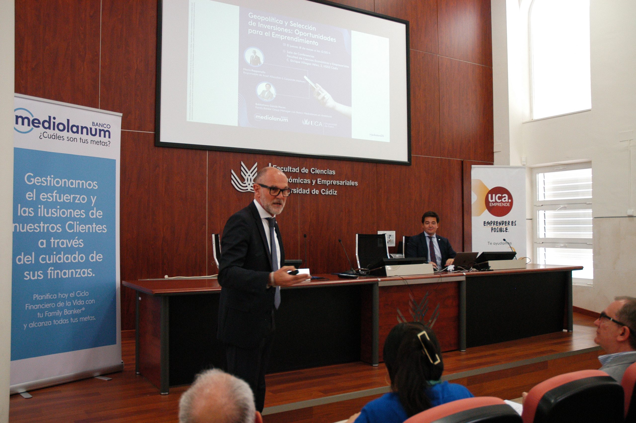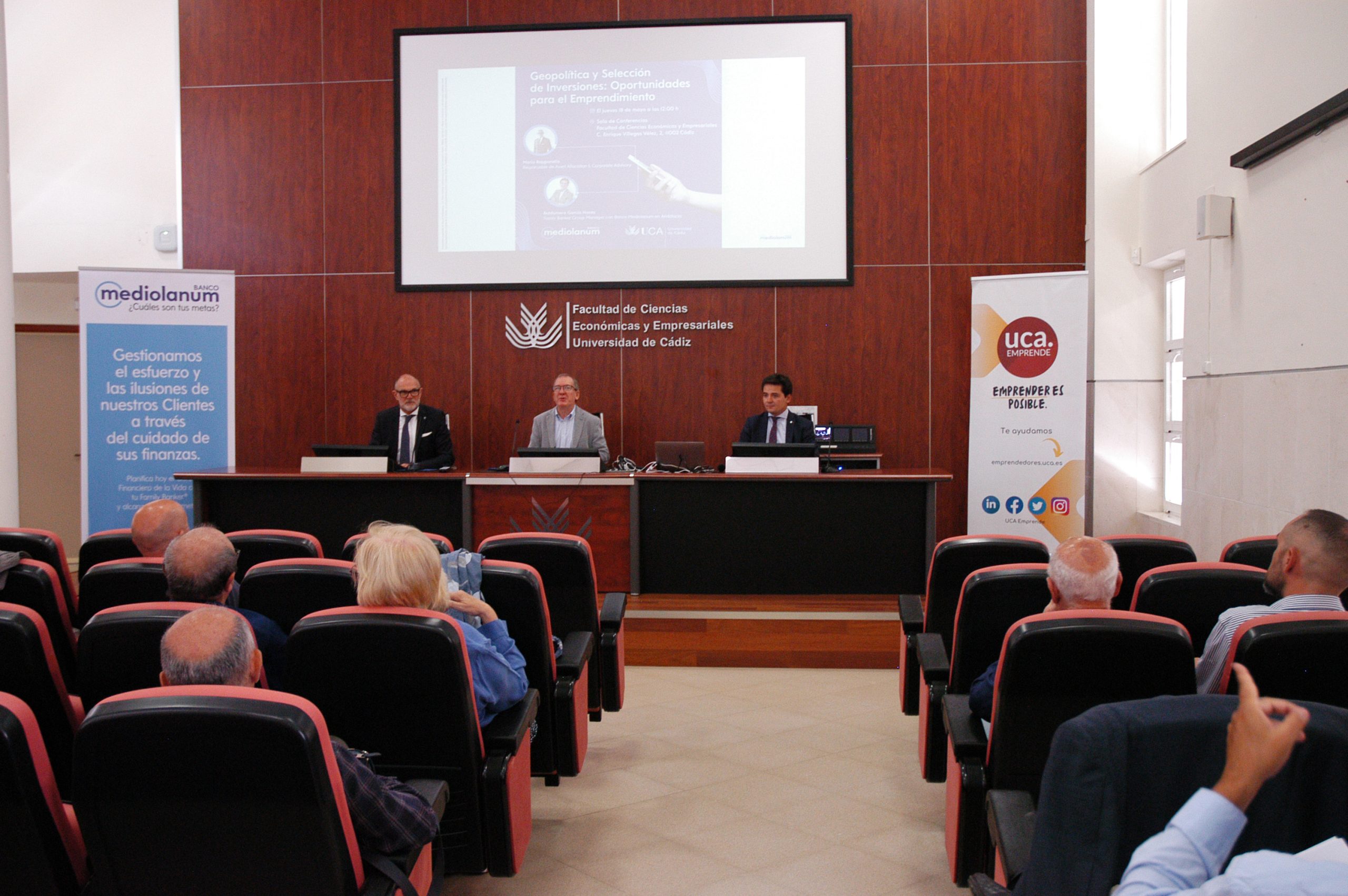 La Universidad de Cádiz organiza hoy, jueves 18, la jornada Geopolítica e Inversiones: Oportunidades para el Emprendimiento en la sala de Conferencias de la Facultad de Ciencias Económicas y Empresariales de Cádiz.