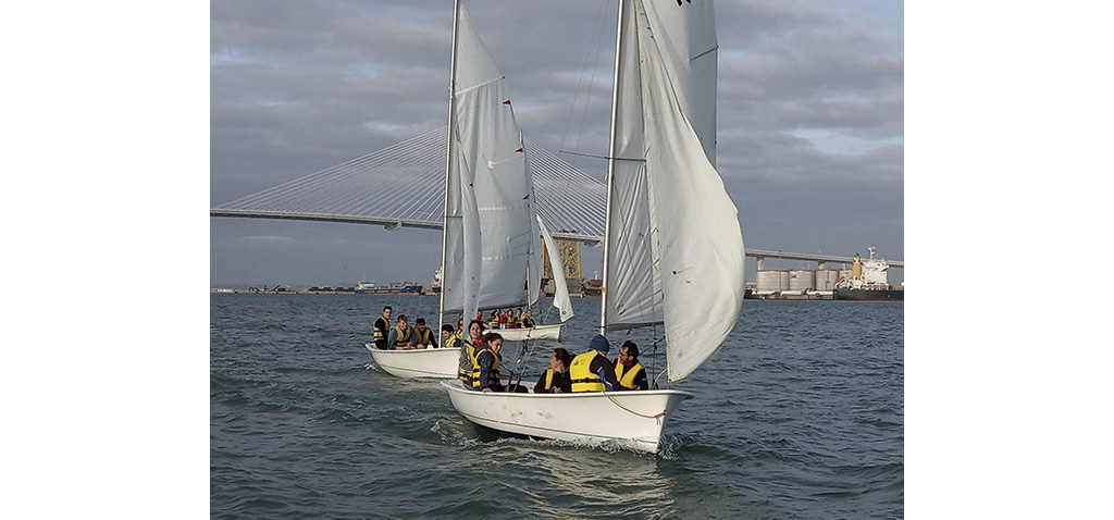 Ocho embarcaciones tipo raquero salieron del Club Náutico Elcano para disfrutar de tres mangas con viento del oeste y 12 nudos de intensidad en la Bahía de Cádiz. Representantes de la Escuela Superior de Ingeniería y de la Facultad de Filosofía y Letras fueron los tres primeros clasificados, seguidos de las embarcaciones compuestas por estudiantes de Navales, ESI, Escuela de Ingeniería Marina, Náutica y Radio y las del instituto IES Las Salinas.