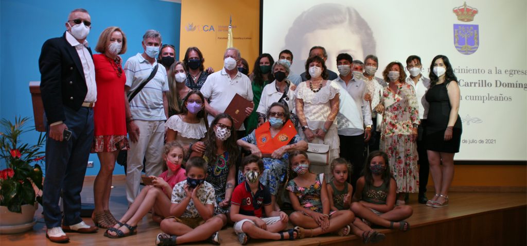 Su gran familia, hermano, primas, sobrinos y sobrinos nietos, le han acompañado en este cálido homenaje, al igual que el personal sanitario del centro geriátrico Adema, donde reside, y también representantes de la comunidad universitaria: del equipo de Gobierno, profesorado, personal de administración y servicios y estudiantes de la UCA.