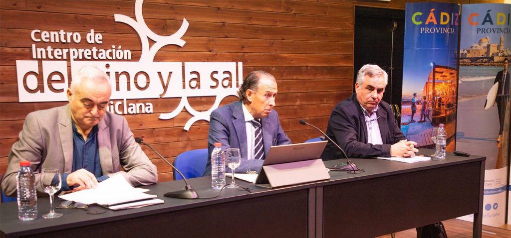 El vicepresidente 1º de la Diputación de Cádiz y diputado de Turismo, José María Román; el director del departamento de Geografía de la Universidad de Cádiz, Manuel Arcila, y el consultor de Adeitur, Antonio Ramos, han presentado hoy el ‘Modelo Metodológico para el ‘Análisis del Turismo Residencial de temporada en la provincia de Cádiz. Estudio de caso: Chiclana de la Frontera’ en el Centro de Interpretación del Vino y la Sal de Chiclana de Frontera. Se trata de una investigación impulsada por la Diputación gaditana, la Universidad de Cádiz (UCA) y la consultora Adeitur.