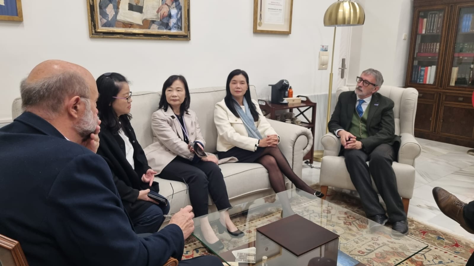 Con posterioridad la delegación se desplazó a la Facultad de Enfermería y Fisioterapia donde se reunió con José Aparicio Patino Vicedecano de Estudiantes y Relaciones Institucionales de la Facultad de Enfermería y Fisioterapia, Cristina Gavira Fernández Vicedecana de Alumnos y Relaciones Internacionales de la Facultad de Enfermería de Algeciras. En dicha reunión, se abordaron, ente otras cuestiones, las posibilidades de colaboración entre ambas facultades en intercambio de alumnos, destacando el interés por los programas de mentoría para las prácticas que están llevando a cabo la universidad taiwanesa. Igualmente, ha han destacado el interés para la organización de clases virtuales en línea con el objetivo de que profesores y estudiantes compartan su experiencia y conocimientos en sus respectivos campos. Esta iniciativa se alinea con el compromiso UCA de promover el aprendizaje continuo y la colaboración internacional.