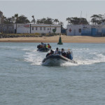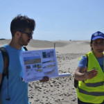 Tras recibir una breve exposición a cargo del profesor Ángel Sánchez-Bellón sobre el contexto geológico de la zona, la expedición se montó en lancha en pequeños grupos desde el embarcadero del Puerto de Sancti Petri hasta la Punta del Boquerón. Este espacio marino constituye el extremo meridional de la isla barrera que separa el Océano Atlántico del sistema de marismas comprendido entre las localidades de San Fernando y Chiclana y que por sus valores paisajísticos y ambientales fue declarado por la Junta de Andalucía en 2003 como Monumento Natural. En este promontorio arenoso, los asistentes pudieron asistir a las explicaciones sobre la influencia de los agentes modeladores, básicamente el viento, el oleaje y las mareas sobre el paisaje. Así, el profesor Eduardo Molina centró su atención sobre el delta de reflujo ubicado en la desembocadura del caño de Sancti Petri, su morfología y evolución, las formas de fondo y los factores condicionantes. Los investigadores Irene Delgado y Juan Montes abordaron “el significativo retroceso de la línea de costas en las últimas décadas, el efecto de los temporales sobre la isla barrera que se manifiesta, entre otros fenómenos, con grandes abanicos de desbordamiento y la génesis y construcción del cordón dunar que en el sector meridional de la isla barrera alcanza alturas superiores a los seis metros”, como detallan los investigadores de la UCA.