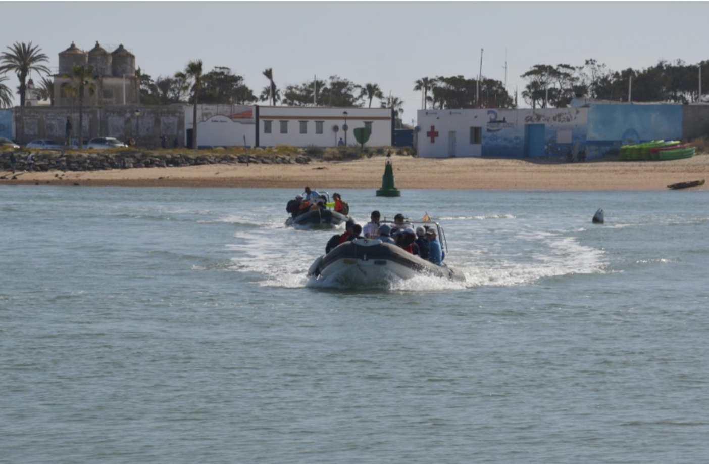 Tras recibir una breve exposición a cargo del profesor Ángel Sánchez-Bellón sobre el contexto geológico de la zona, la expedición se montó en lancha en pequeños grupos desde el embarcadero del Puerto de Sancti Petri hasta la Punta del Boquerón. Este espacio marino constituye el extremo meridional de la isla barrera que separa el Océano Atlántico del sistema de marismas comprendido entre las localidades de San Fernando y Chiclana y que por sus valores paisajísticos y ambientales fue declarado por la Junta de Andalucía en 2003 como Monumento Natural. En este promontorio arenoso, los asistentes pudieron asistir a las explicaciones sobre la influencia de los agentes modeladores, básicamente el viento, el oleaje y las mareas sobre el paisaje. Así, el profesor Eduardo Molina centró su atención sobre el delta de reflujo ubicado en la desembocadura del caño de Sancti Petri, su morfología y evolución, las formas de fondo y los factores condicionantes. Los investigadores Irene Delgado y Juan Montes abordaron “el significativo retroceso de la línea de costas en las últimas décadas, el efecto de los temporales sobre la isla barrera que se manifiesta, entre otros fenómenos, con grandes abanicos de desbordamiento y la génesis y construcción del cordón dunar que en el sector meridional de la isla barrera alcanza alturas superiores a los seis metros”, como detallan los investigadores de la UCA.