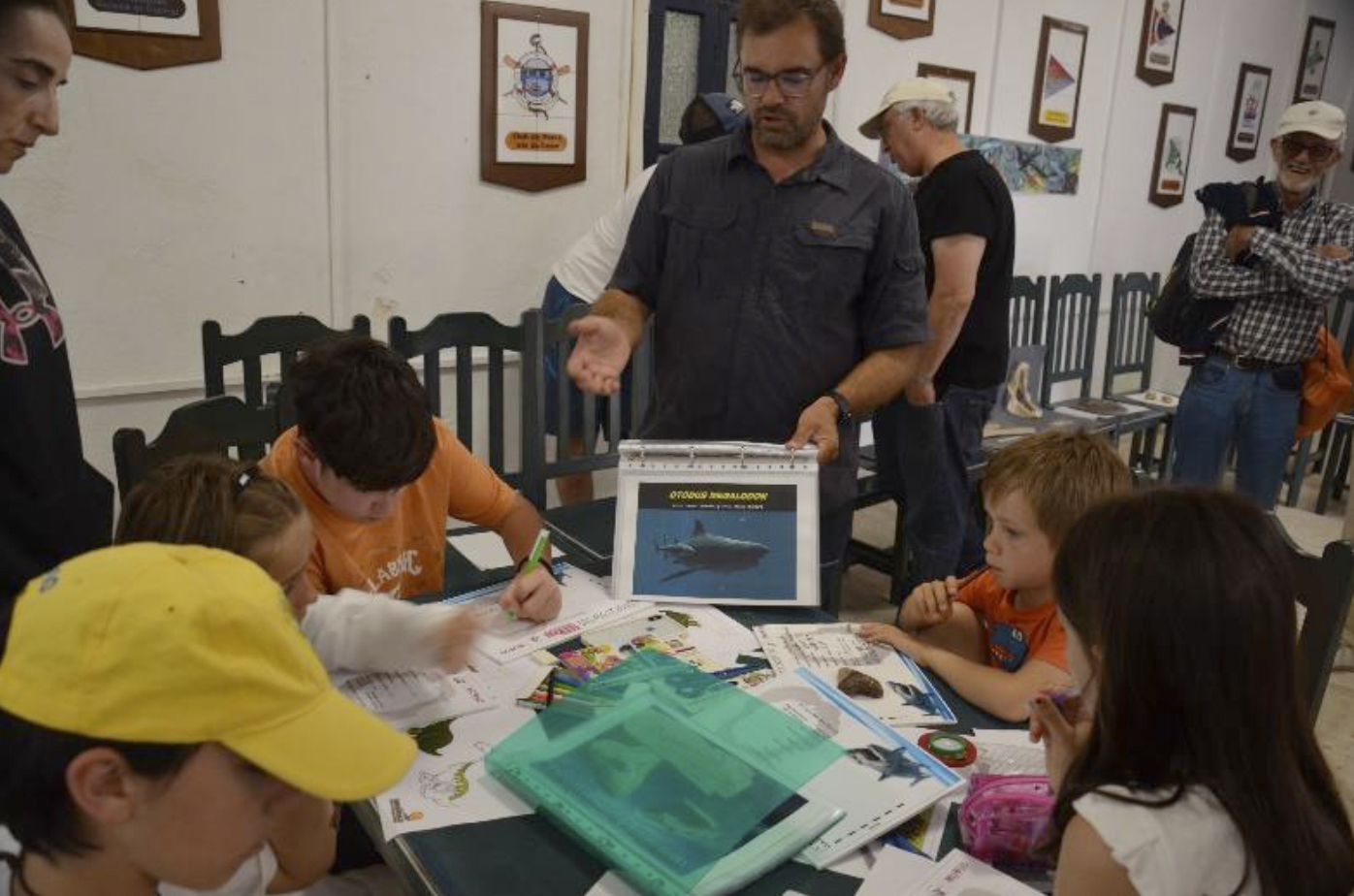 Al término de la jornada de campo, en la sobremesa Daniel Paniagua desarrolló un taller sobre dientes de tiburón y megalodón con material proporcionado por el Dr. Fernando Muñiz, dirigido especialmente a los más pequeños.