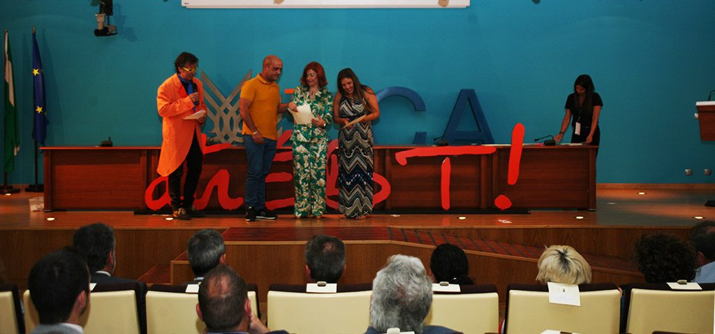 En esta ocasión, el rector en funciones de la Universidad de Cádiz, Eduardo González Mazo, acompañado por la directora General de Economía Digital e Innovación de la Consejería de Economía, Conocimiento, Empresas y Universidad de la Junta de Andalucía, Loreto del Valle, la directora gerente de Andalucía Emprende, Rosa Siles, el subdelegado del Gobierno en Cádiz, José Pacheco, y los representantes de las entidades e instituciones patrocinadoras, han hecho entrega de los premios en un acto donde los participantes en el certamen desconocían el nombre de los ganadores hasta que éste era pronunciado por las autoridades correspondientes.