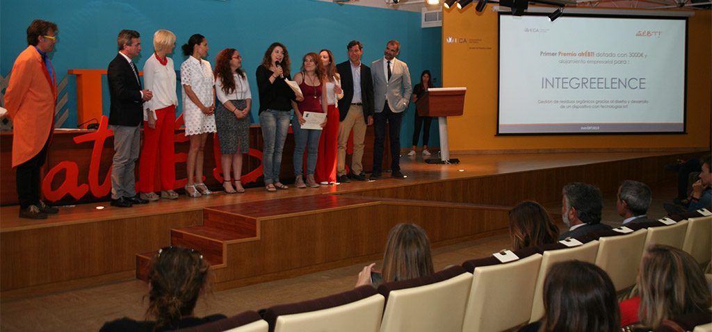 Así, los primeros premios de la modalidad de Proyectos de Empresa fueron otorgados a las iniciativas Integreellence, en la línea de atrÉBT!, y ArtistsOntheWay, como mejor proyecto dentro de atrÉBT! HUMAN. Integreellence es una iniciativa para la gestión de residuos orgánicos gracias al diseño y desarrollo de un dispositivo con tecnologías IoT que facilita su funcionamiento desde Internet. Los responsables de esta iniciativa son Iris Sopo Lambea, José Girón Montes y Chanel Sopo Lambea. De igual forma, LiveLink Ventures SL, promovida por Jesús Carnerero, Fernando Olea y Beatriz Martin Morell fue galardonada con el segundo premio de esta categoría. Este proyecto pretende ofertar un dispositivo eCall, aviso de manera automática a Emergencias, para motos.