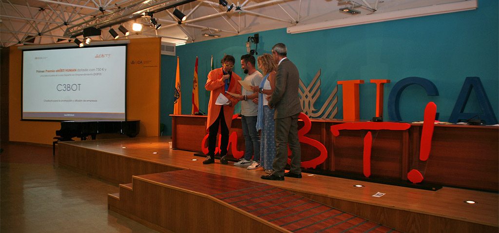 Por otro lado, en la categoría atrÉBT! HUMAN de la modalidad de ideas se ha premiado en primer lugar a C3BOT, que ofrece un chatbots (robot capaz de simular una conversación) para la promoción y difusión de empresas. Esta propuesta ha sido realizada por Marta Sánchez-Saus Laserna, Cristian Marín y Mario Crespo. Babymath, de Carlos Mera, Estibaliz Aragón y José Ignacio Navarro, obtuvo el segundo galardón con la creación y desarrollo de aplicaciones que promuevan el aprendizaje de las matemáticas en las primeras etapas educativas.