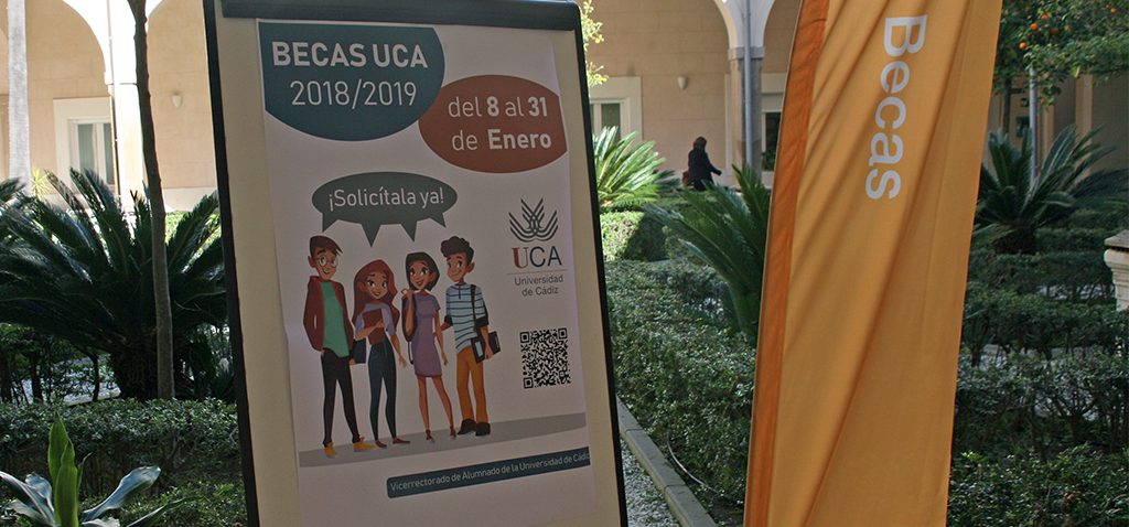 La vicerrectora de Alumnado de la Universidad de Cádiz, Concha Valero, acompañada por la directora de secretariado de Alumnos, Cristina Goenechea, ha entregado el premio del concurso para el diseño del cartel de la convocatoria Becas UCA 2018/19 a Cristóbal Sánchez Ruiz. El jurado de esta edición ha fallado a favor de la propuesta presentada por este alumno del máster oficial en Dirección de Marketing Digital y Social de la UCA.