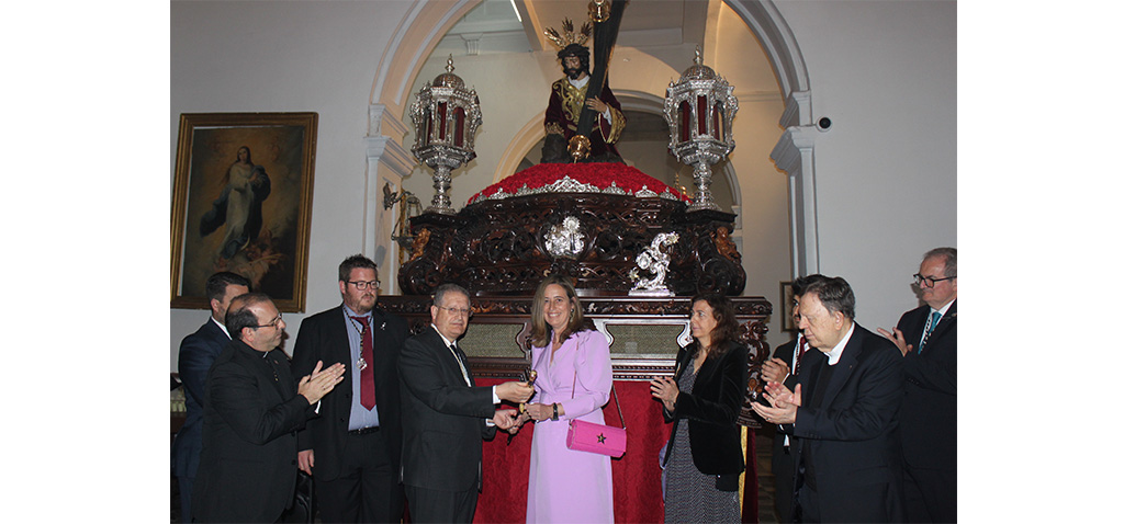 Como cada Martes Santo, la Universidad de Cádiz cede hoy el bastón de Mando a la Hermandad Sacramental, Venerable y Marianista Cofradía de Penitencia de Nuestro Padre Jesús Caído y María Santísima de los Desamparados en el convento de San Francisco para que la imagen titular de esta cofradía incorpore en el paso de misterio uno de los símbolos de gobierno de la institución universitaria.