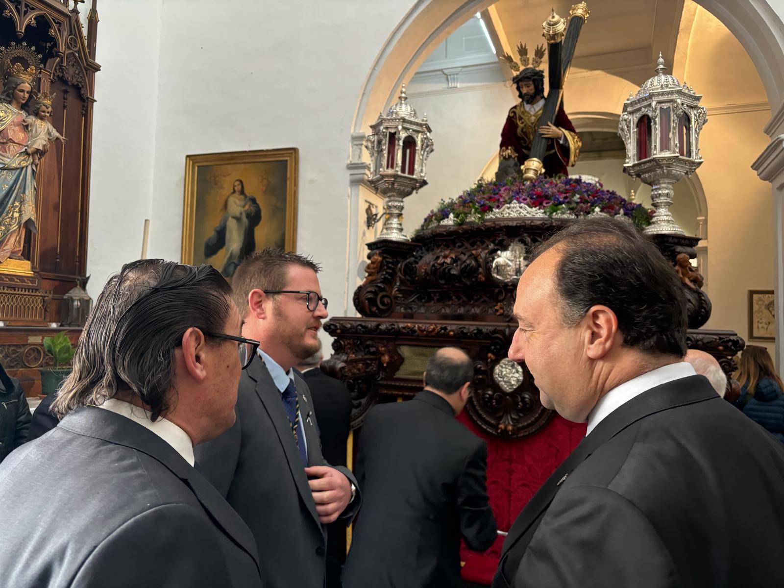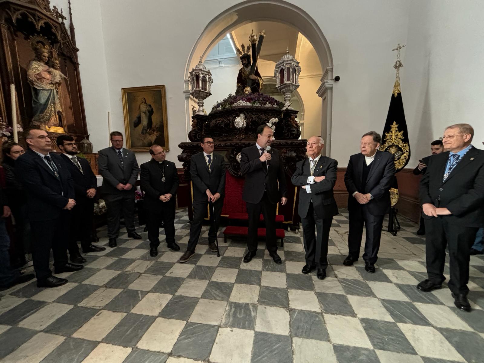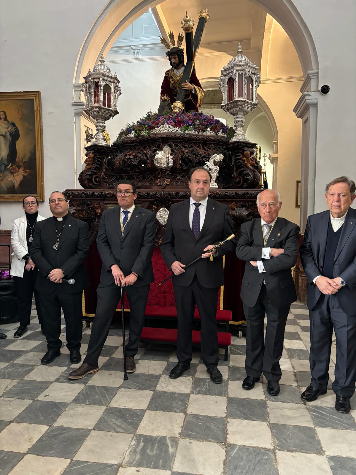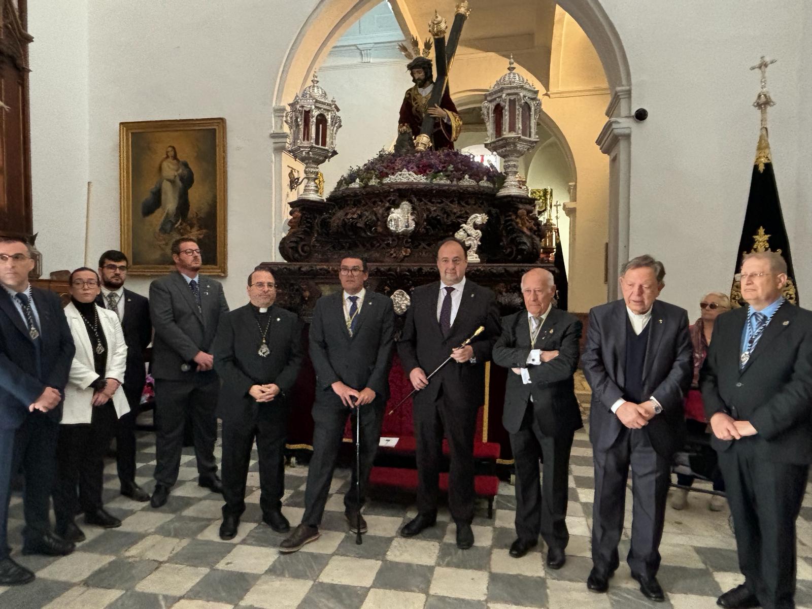 El rector de la Universidad de Cádiz, Casimiro Mantell, junto al hermano Mayor de la Hermandad de El Caído, Mauricio García, han presidido la entrega del bastón de Mando de la UCA, para que forme parte de los elementos que acompañen a la imagen de los Titulares en estos días de visitas por parte de la ciudadanía en su templo. El acto ha contado, como en años anteriores, con la asistencia del hermano Mayor Honorario, Pedro Reynoso, el guardián del convento de San Francisco, Jesús Fernández, el padre espiritual, Rafael Iglesias, y el mayordomo de esta cofradía, Jesús Romero. Además, del acompañamiento musical de la Coral de la UCA.