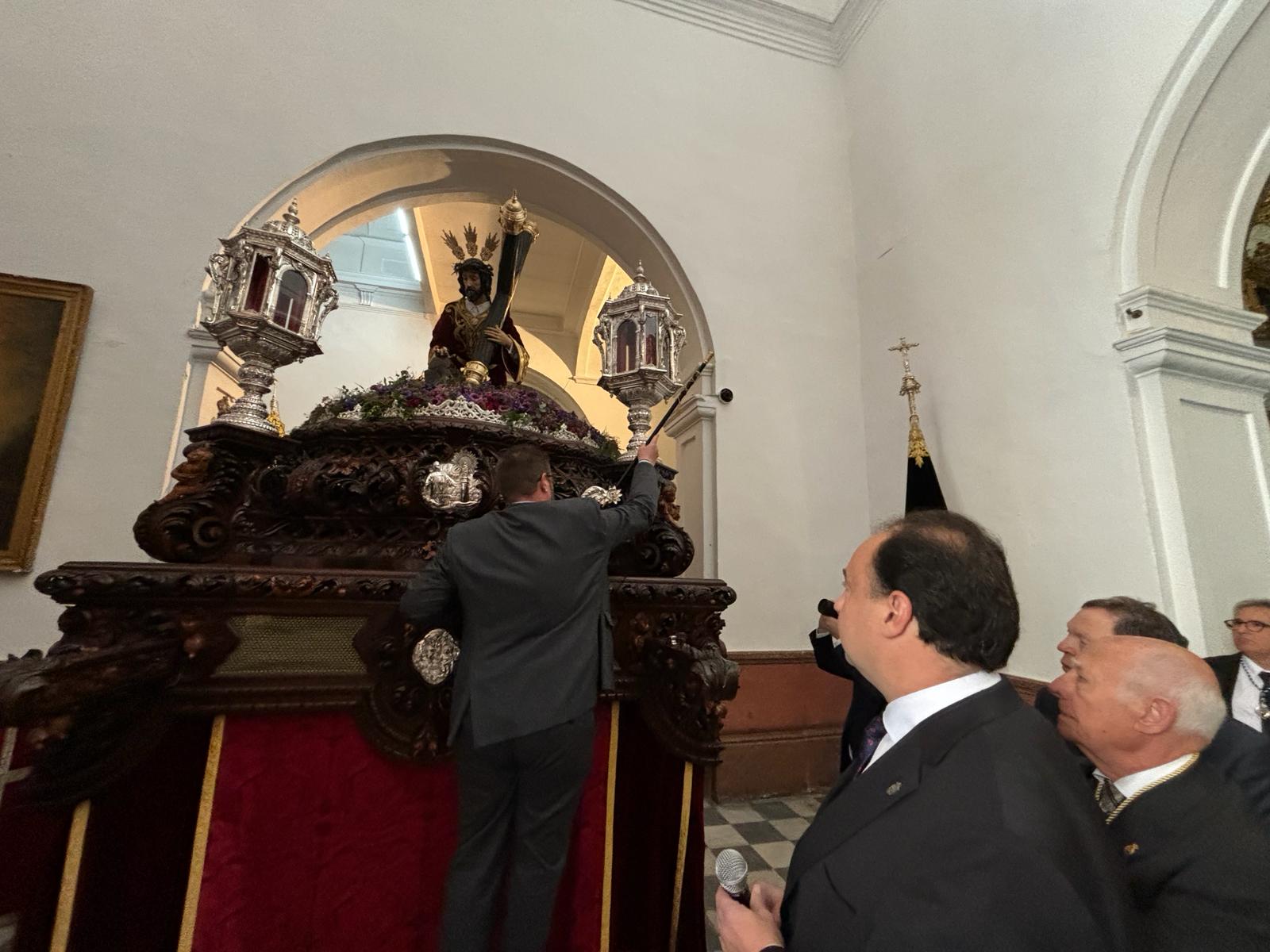 Como cada Martes Santo, la Universidad de Cádiz cede hoy el bastón de Mando a la Hermandad Sacramental, Venerable y Marianista Cofradía de Penitencia de Nuestro Padre Jesús Caído y María Santísima de los Desamparados en el convento de San Francisco para que la imagen titular de esta cofradía incorpore en el paso de misterio uno de los símbolos de gobierno de la institución universitaria.