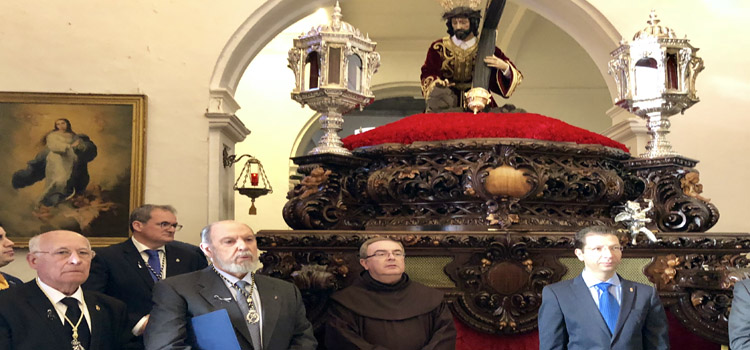 Como cada Martes Santo, la Universidad de Cádiz cede hoy el bastón de mando a la Hermandad Sacramental, Venerable y Marianista Cofradía de Penitencia de Nuestro Padre Jesús Caído y María Santísima de los Desamparados en el convento de San Francisco para que la imagen titular de esta cofradía incorpore en el paso de misterio uno de los símbolos de gobierno de la institución.
