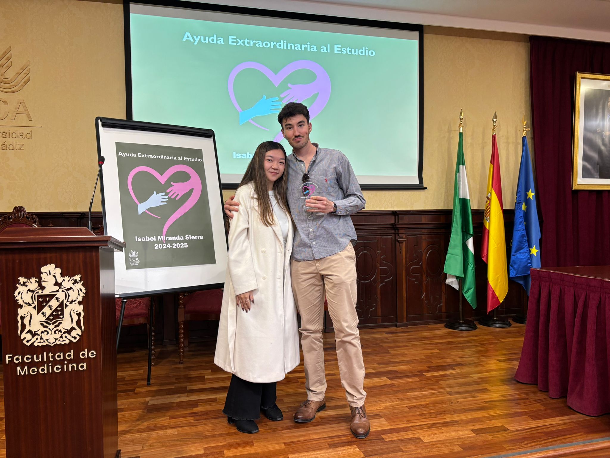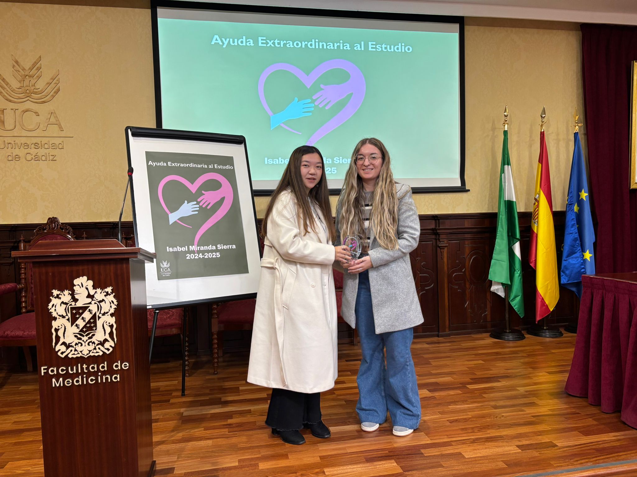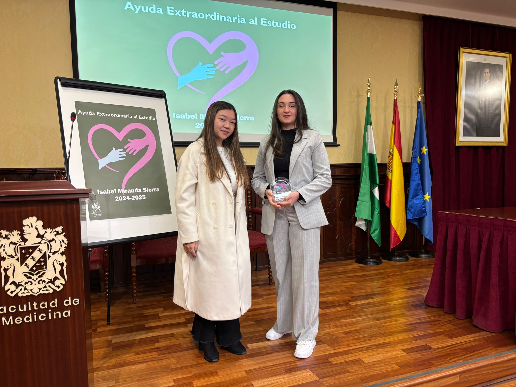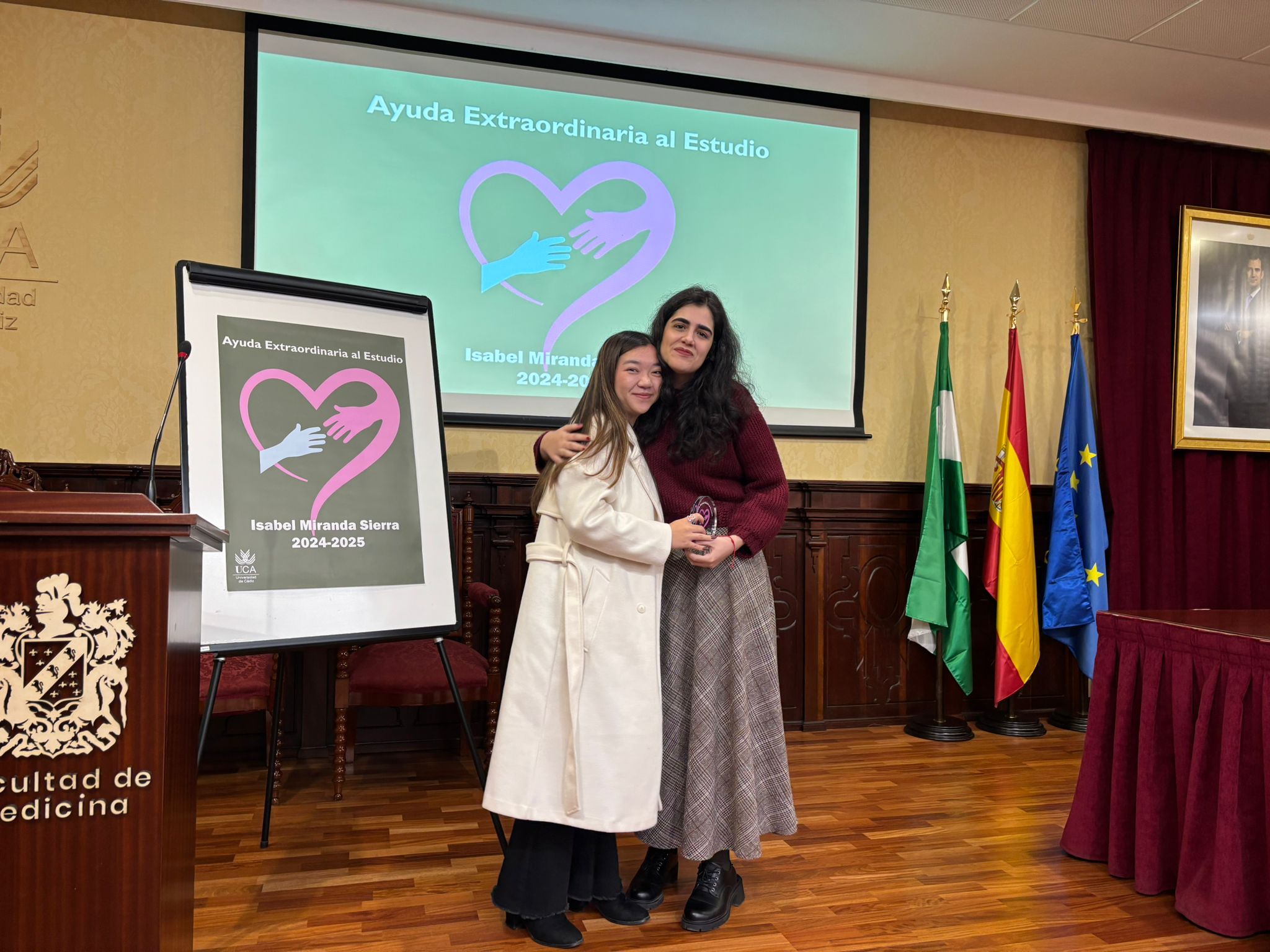 Además de la ayuda económica, a los beneficiarios se les ha entregado una metopa conmemorativa en reconocimiento a su buen expediente académico. Las metopas conmemorativas de la distinción obtenida se han entregado por la hija de Isabel Miranda, Andrea Saborido.