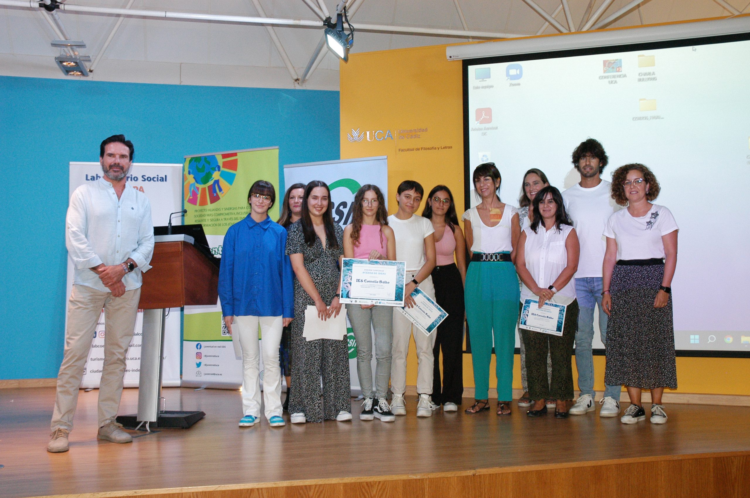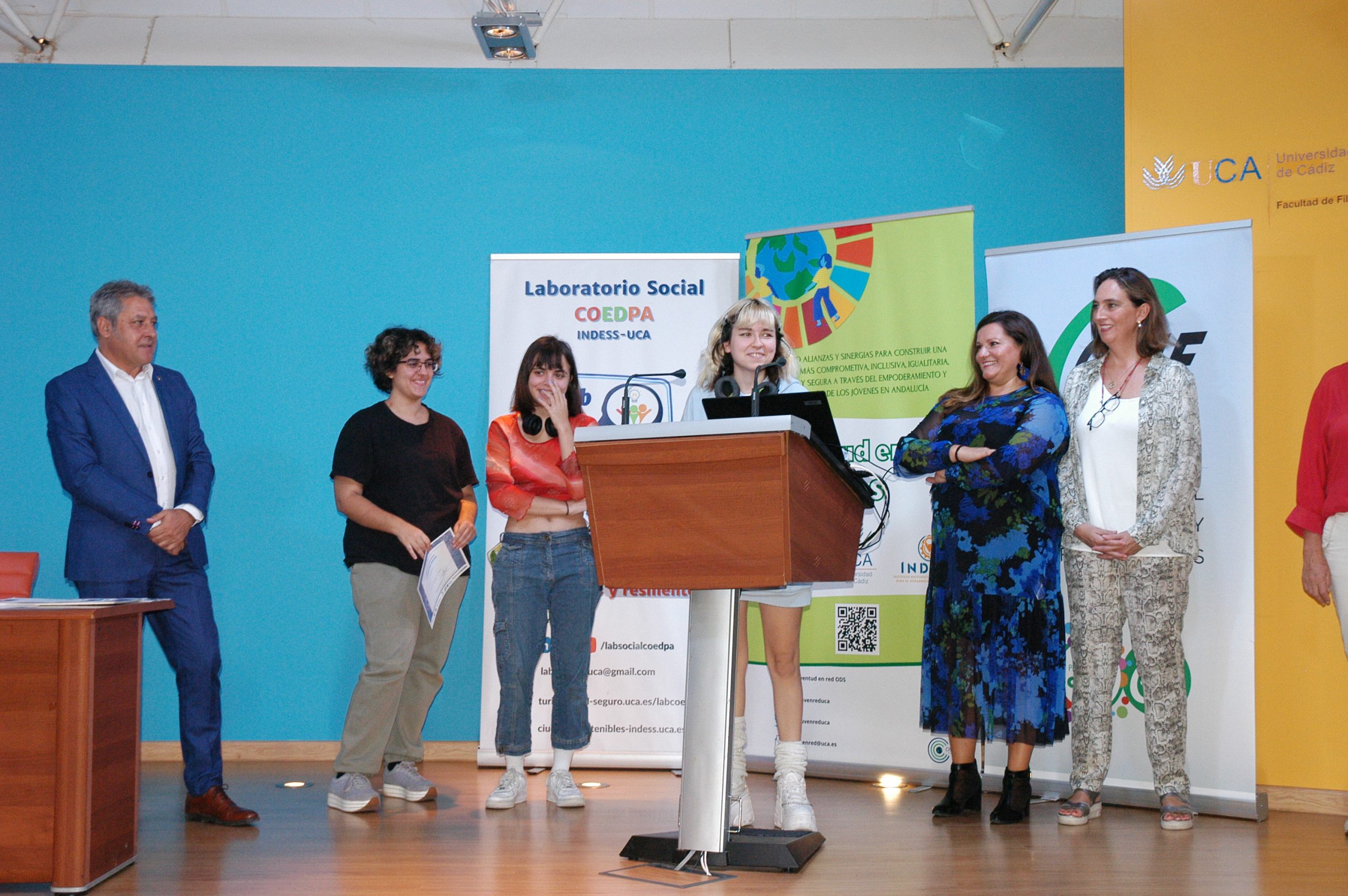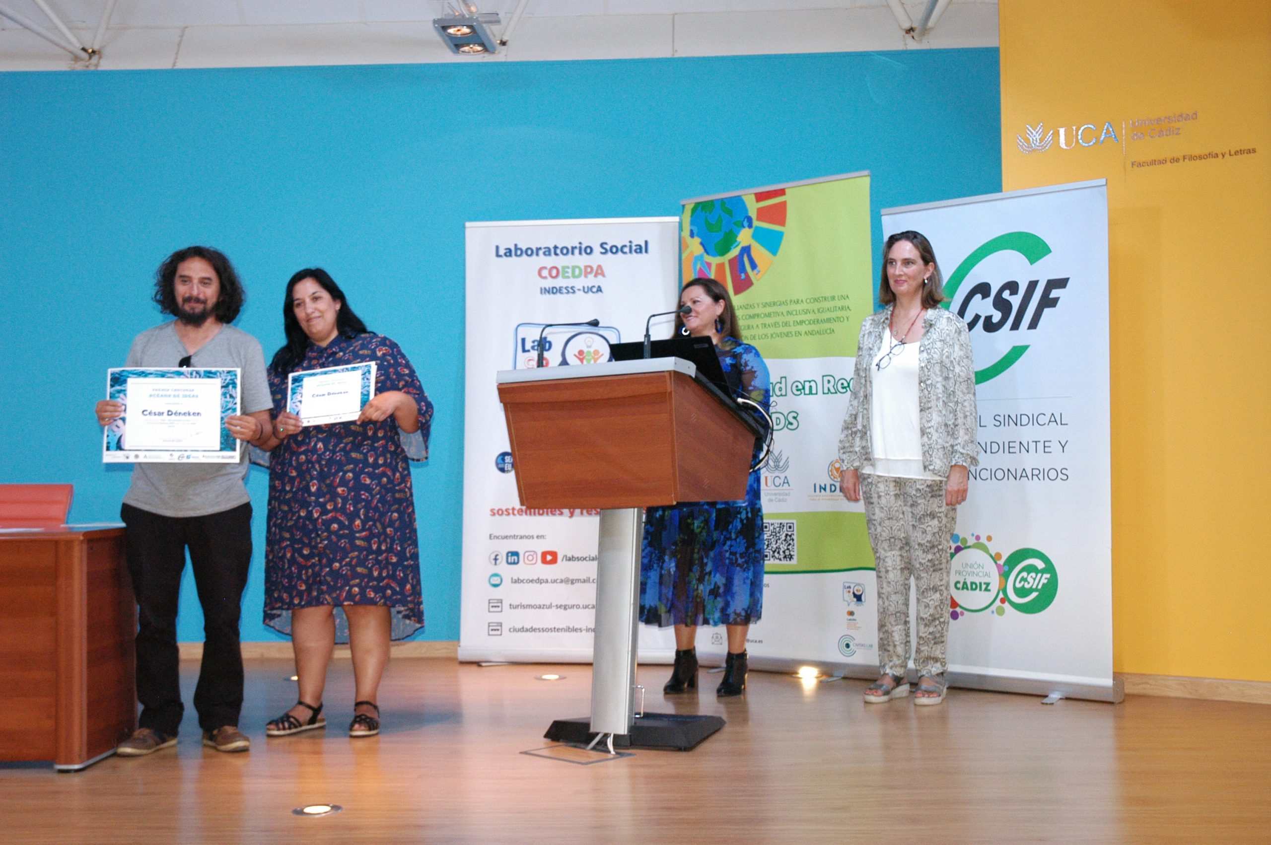 Tras la proyección de las 12 obras finalistas (se adjunta listado), se ha hecho entrega de los galardones. En primer lugar, en la sección Centro educativo al IES Cornelio Balbo (Cádiz) por su corto Pequeñas acciones para preservar la biodiversidad, ha recibido un premio – aportado por CSIF Cádiz – por valor de 1.000 euros, en la de Juventud sostenible al corto Vita de Nacho Vargas (El Puerto de Santa María), dotado con 500 euros patrocinados por la Fundación del Cádiz Club de Fútbol, en la categoría Comunidad Universitaria ganó La Historia de una neonatóloga de Gonzalo Vadillo (Puerto Real), que obtuvo 600 euros de la Oficina de Cooperación Internacional de la UCA, y; por último, en la sección nacional Océano ODS, dotada con 1.000 euros en material audiovisual con el soporte de Aguas de Cádiz, se reconoce el corto Aiko – Me encanta el mar de César Déneken (Jerez de la Frontera).