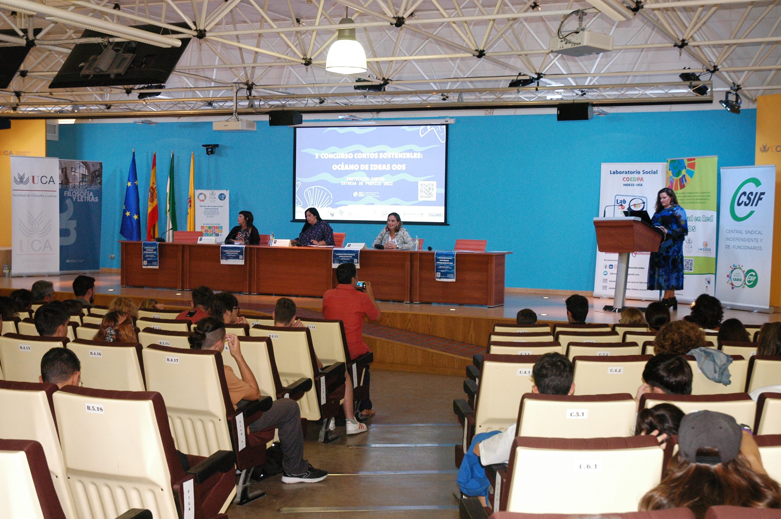La Universidad de Cádiz, desde el Instituto Universitario de Investigación para el Desarrollo Social Sostenible (INDESS) en colaboración con la Oficina de Cooperación Internacional, y CISF Cádiz han celebrado, en la Facultad de Filosofía y Letras, la proyección de los 12 cortos finalistas y la entrega de premios del primer concurso de cortos sostenibles Océano de Ideas ODS. Un certamen que por primera vez se integra como actividad paralela del Festival Internacional de Alcances de Cádiz.