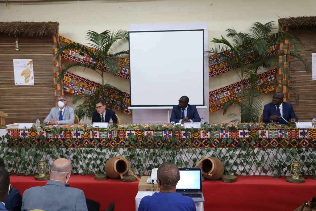 El acto inaugural, celebrado en la Universidad Félix Houphouët Boigny (UFHB), contó con la presencia de más de 200 representantes de distintas universidades, junto al rector y al vicerrector de Internacionalización de la UCA, de Adama Diawara, ministro de Enseñanza Superior e Investigación Científica de Costa de Marfil, de Balló Zié, rector de la UGHB, del embajador de España en Costa de Marfil, del director del SEPIE, y de Ehouan Éhile, ex secretario general de la Asociación de Universidades Africanas.