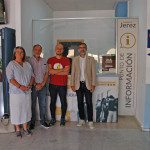 Foto 2: Punto de Información de la Oficina del Estudiante en el Campus de Jerez. De izquierda a derecha: Carolina Martín, directora de secretariado de Alumnado, Antonio Rafael Peña, delegado del Rector para el Campus de Jerez, Joaquín Collado, becario del Punto de Información de la Oficina del Estudiante en Jerez, y Manuel Sánchez, vicerrector de Estudiantes y Empleo de la UCA.