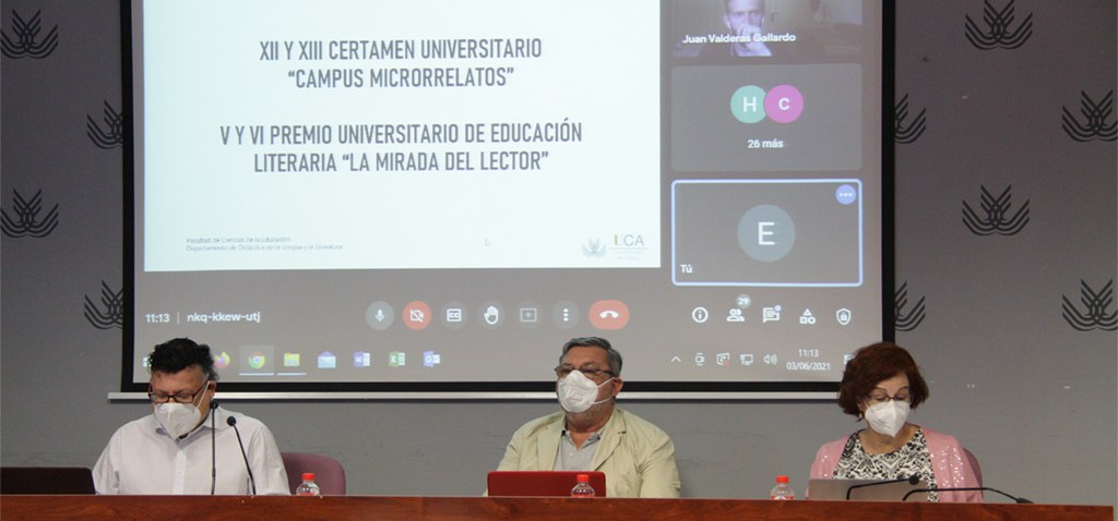 La sala de Conferencias Alicia Plaza de la Facultad de Ciencias de la Educación ha acogido el acto de clausura de los XII y XIII Certamen Universitario Campus-Microrrelatos y de los V y VI Premio Universitario de Educación Literaria La Mirada del Lector, organizados por el departamento de Didáctica de la Lengua y la Literatura de la Universidad de Cádiz. Un encuentro, que ha aglutinado los fallos correspondientes a las últimas ediciones debido al estado de alarma sanitaria que surgió en 2020.