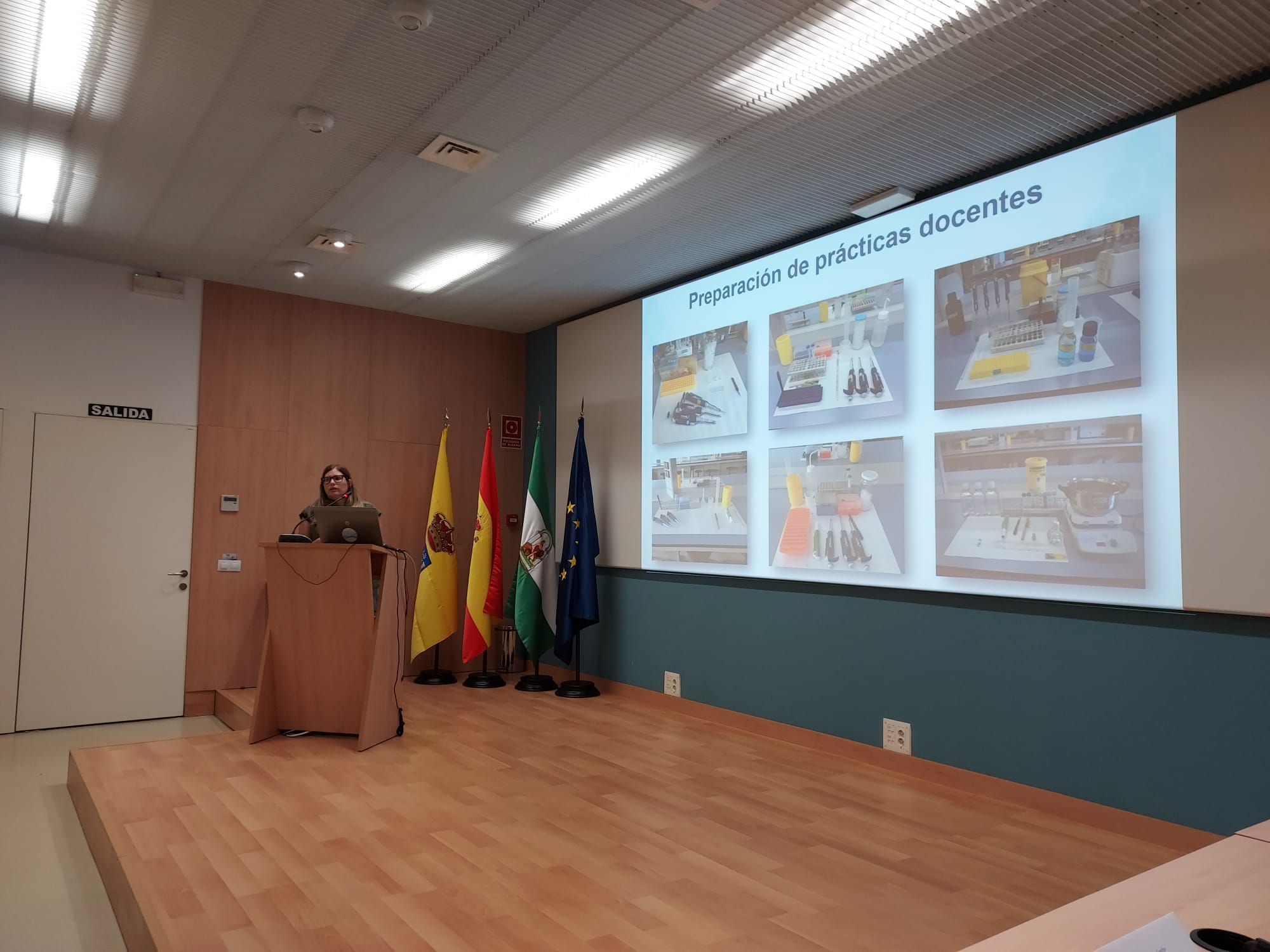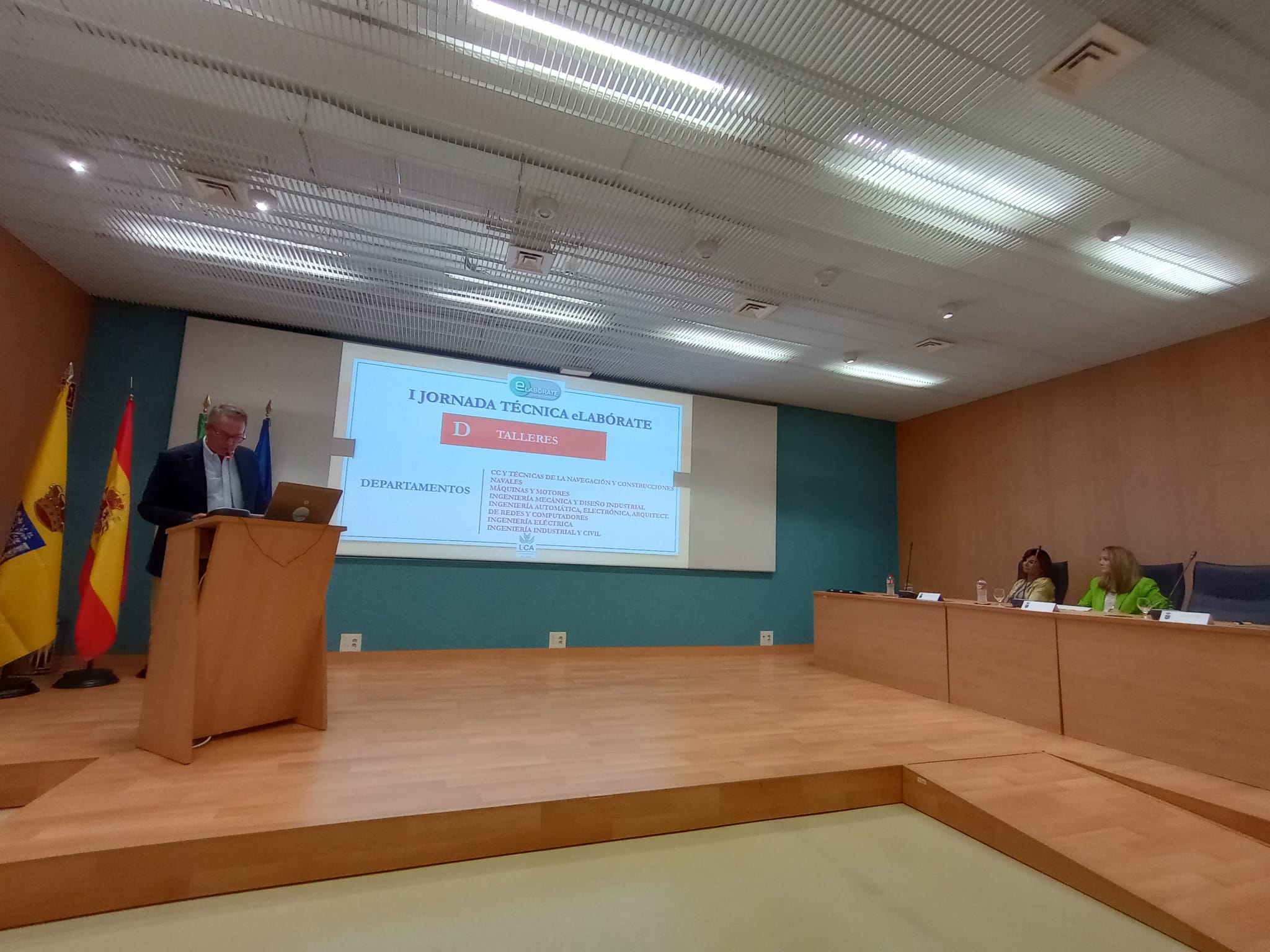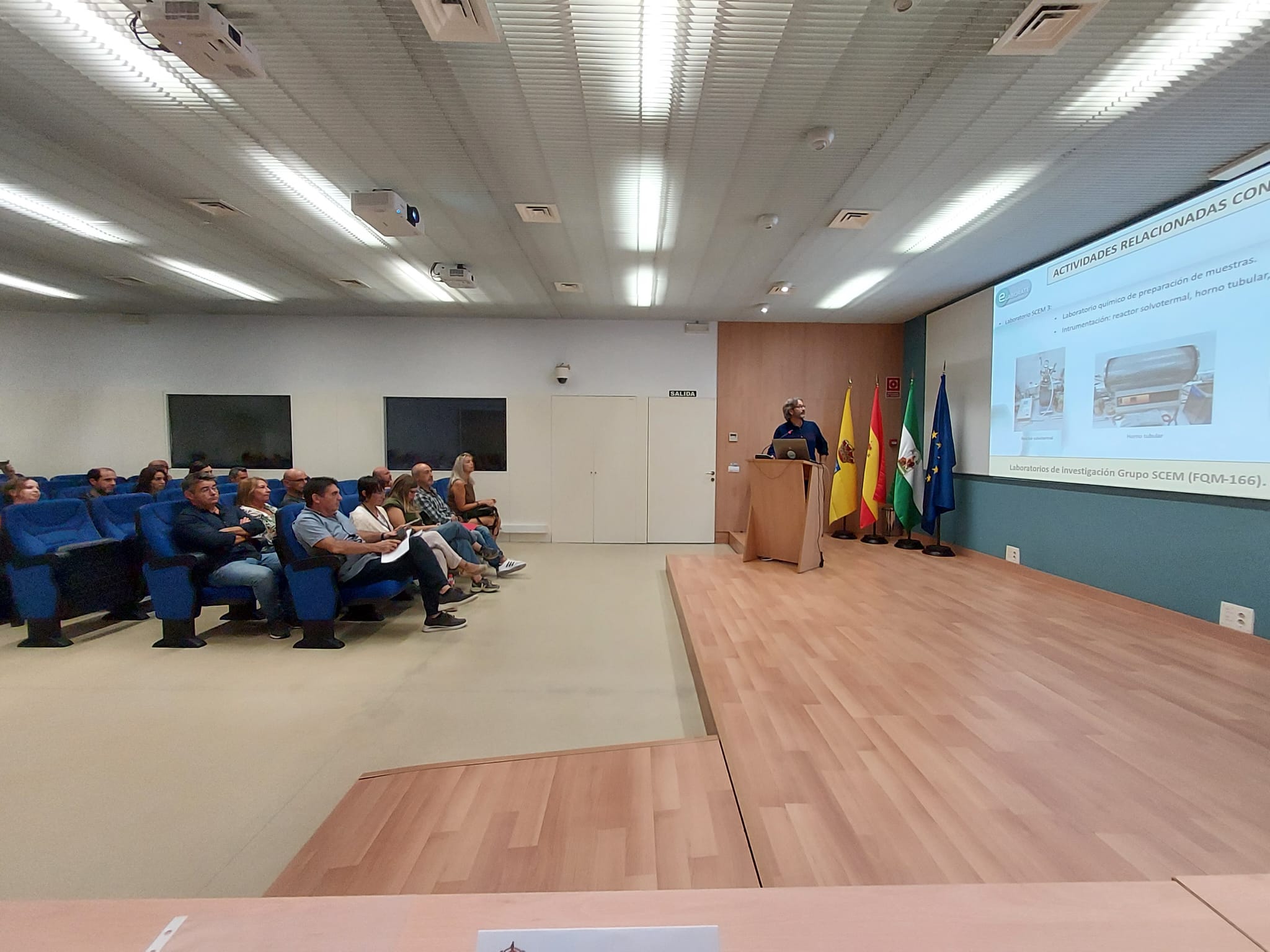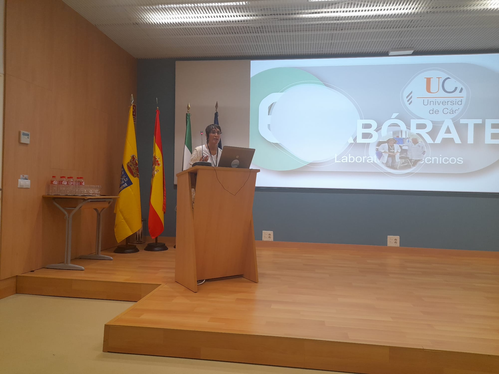 La jefa del servicio de Gestión de la Calidad de la UCA, Juana Álvarez, ha pronunciado la primera ponencia sobre Gestión de la calidad: Laboratorios, seguida de Carlos Gómez Luy, del servicio de Prevención, que ha tratado de Seguridad y salud en laboratorios y talleres (aspectos ergonómicos, higiénicos y de seguridad). La segunda parte del programa se ha dedicado a la intervención de los técnicos de eLABÓRATE de los distintos tipos de laboratorios, presentados por el coordinador del grupo.