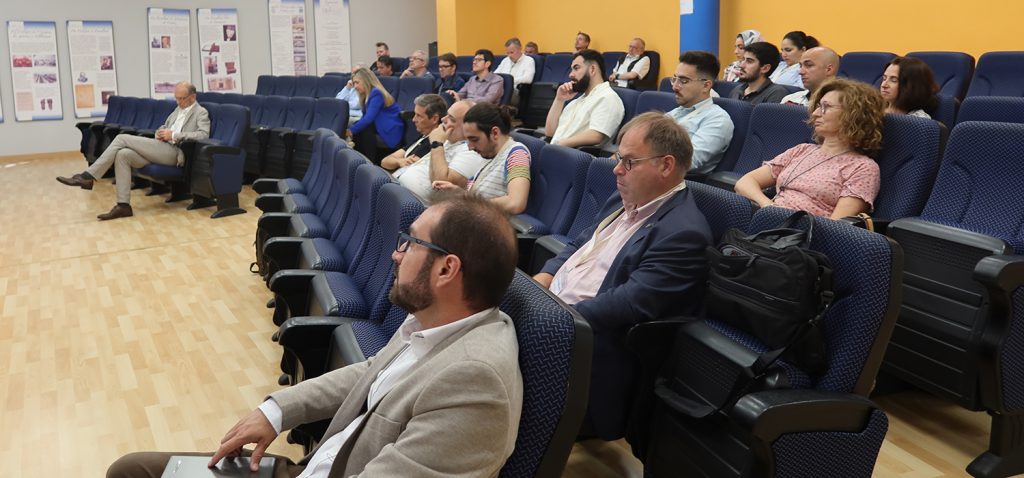 El director General de Infraestructura Científica e Institutos de Investigación de la UCA, José Antonio López, junto al vicepresidente de Digitalización de la Universidad de Ciencias Aplicadas de Frankfurt, Martin Kappes, el presidente del Comité del Programa, Jörg Schäfer, y el presidente del Comité Organizador, Juan Boubeta, les han dado la bienvenida en la sala Arqüelles.