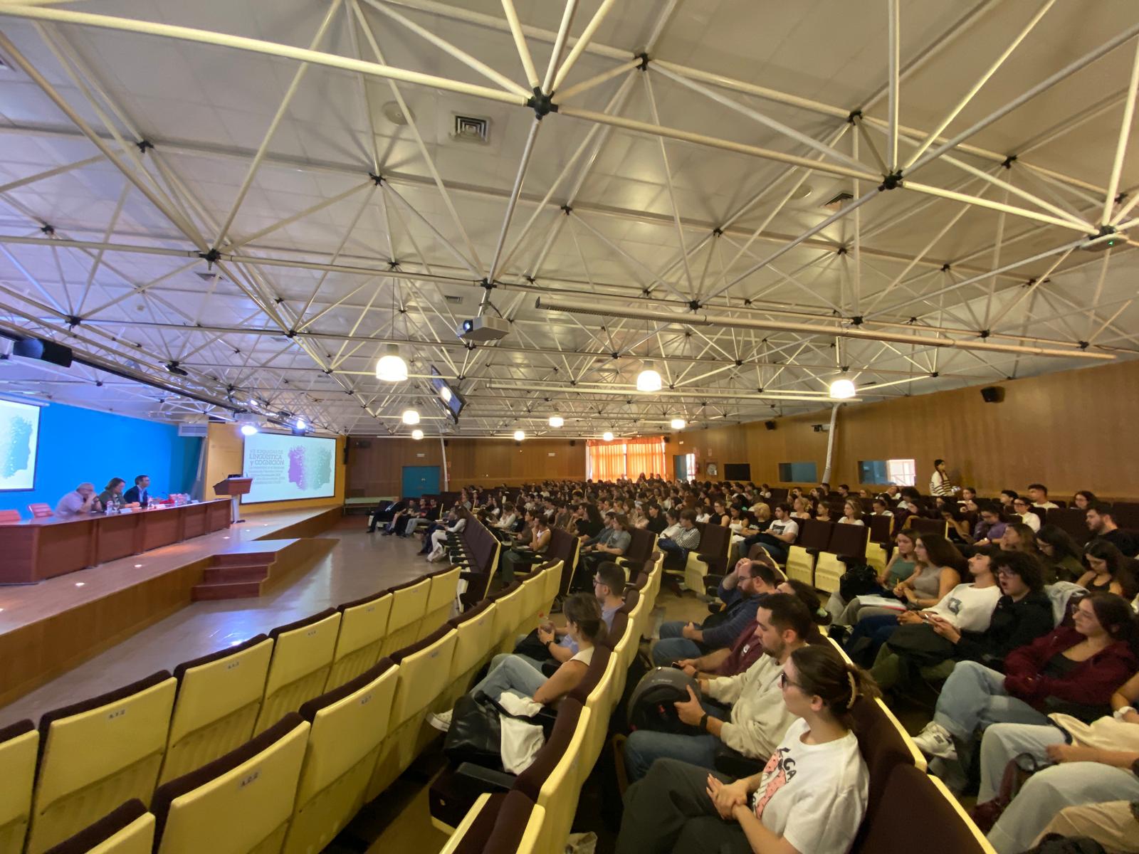 La vicerrectora de Estudiantes de la UCA, Nuria Campos, les ha dado la bienvenida en compañía del decano del centro, Arturo Morgado, y el profesor José María García Núñez en el aula Magna.