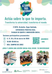 La Universidad de Cádiz pone en marcha los Seminarios de Formación Solidaria Actuando para Transformar, una propuesta formativa incluida en la XII Escuela de Solidaridad UCA que busca fomentar la reflexión crítica, el compromiso social y la acción transformadora entre el estudiantado universitario.