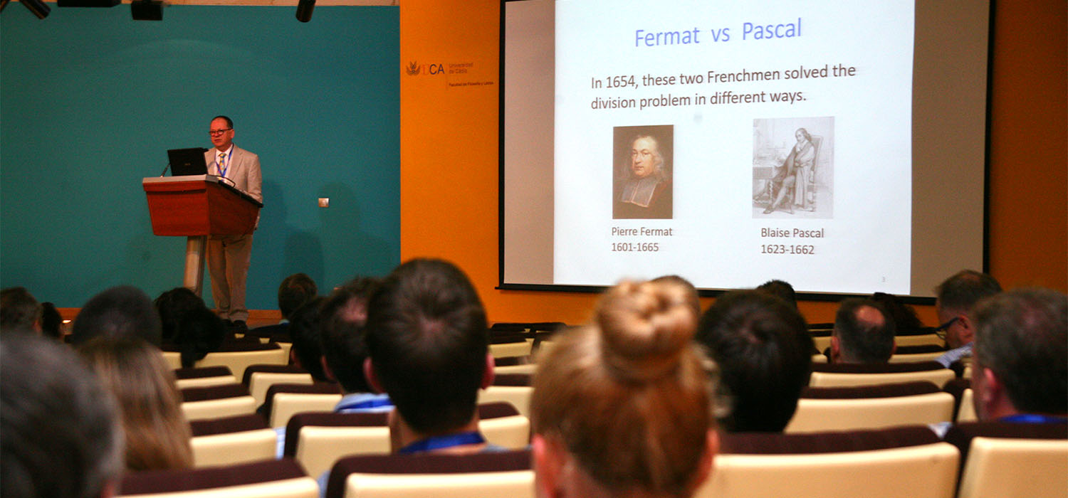 El catedrático Glenn Shafer de la Universidad de Rutgers en Newark (Estados Unidos) ha impartido la conferencia inaugural sobre El ensayo/contraste de hipótesis como un juego o Hypothesis Testing as a game. Los organizadores del Congreso le han concedido un premio por sus contribuciones fundamentales en la teoría matemática de las funciones de evidencia y funciones de creencia, así como en el campo del razonamiento bajo incertidumbre. La llamada teoría de Dempster-Shafer, una alternativa a la teoría de la probabilidad, que se ha aplicado ampliamente en ingeniería e inteligencia artificial.