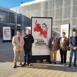 El vicerrector en funciones de Cultura de la Universidad de Cádiz, Jacinto Porro, junto al decano de la Facultad de Ciencias Sociales y de la Comunicación, José Antonio López, los delegados de Cultura y de Desarrollo Educativo, Formación Profesional, Universidades y Deportes del Ayuntamiento de Jerez, Francisco Zurita y José Ángel Aparicio, y el coordinador del máster interuniversitario Investigación y Análisis del Flamenco, Francisco Perujo, ha inaugurado esta mañana en el patio del Aulario del Campus de Jerez la exposición organizada por la UCA en el Centenario de Lola Flores y que, bajo el título de ‘Una estrella de cine, recoge una veintena de afiches seleccionados entre la extensa cinematografía de la artista jerezana con más de 40 títulos protagonizados en la gran pantalla desde su debut en 1940 con Martingala hasta su última aparición en Coraje de vivir (1993).