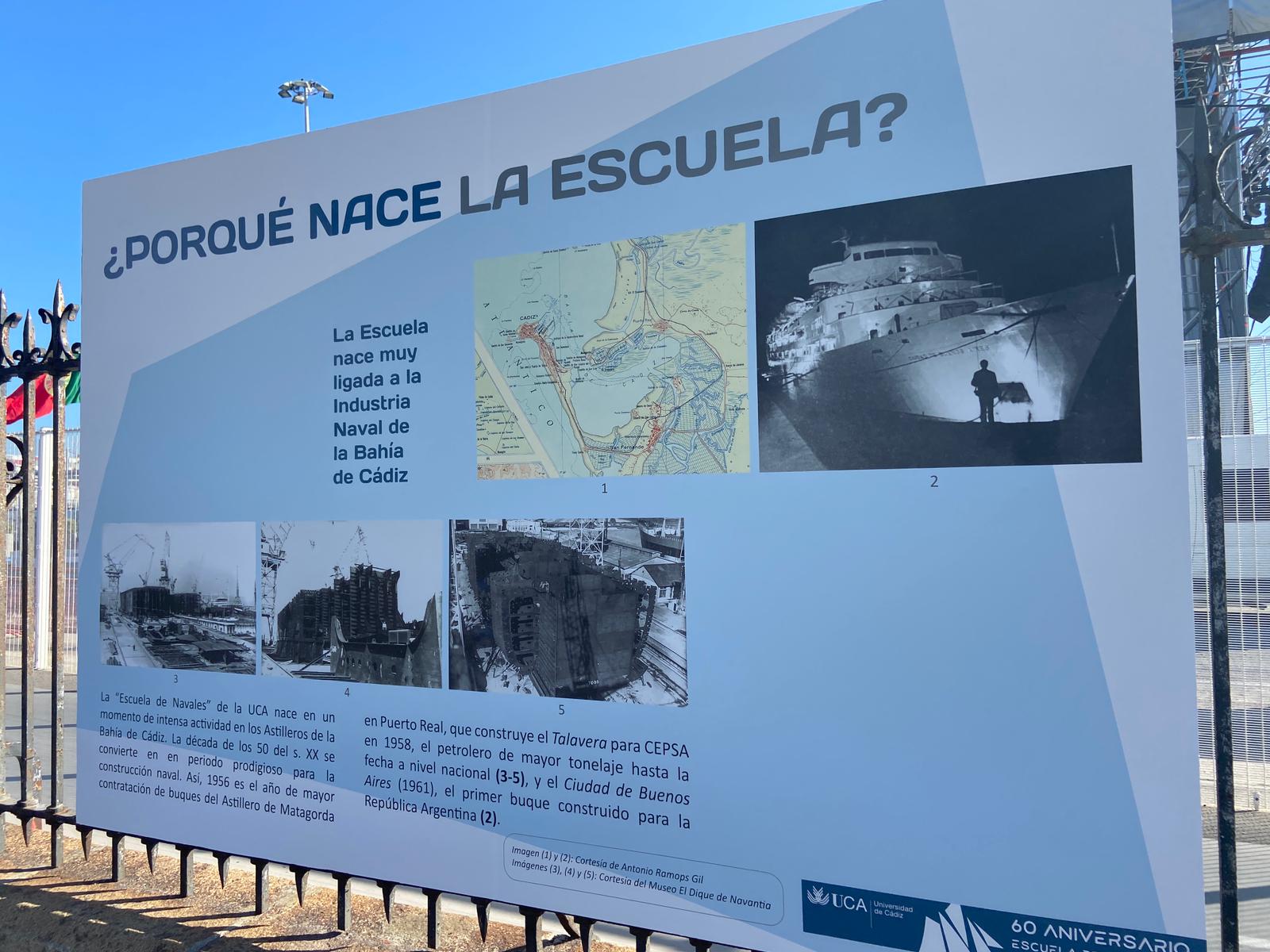 Francisco Piniella, en primer lugar, ha agradecido a la Escuela de Ingeniería Naval y Oceánica “el enorme esfuerzo para desarrollar el programa de actividades conmemorativas de su 60 aniversario. En especial, a su directora el alma mater y la ejecutora principal de esta idea”. Esta exposición, ha continuado, que “no hubiera sido posible sin el apoyo y colaboración desde el primer minuto de la APBA. Gracias, presidenta, por cedernos este magnífico soporte que es la verja del muelle por donde en los próximos días y semanas pasarán miles de personas. Y agradecimiento, también, a Diario de Cádiz porque de nuevo se demuestra el papel valioso de su archivo que es la memoria de la ciudad y de la Bahía en estos último siglo y medios. Agradecer la colaboración de las empresas, como Navantia, e instituciones, como la Armada, que han colaborado en los contenidos de la exposición; y al personal del Gabinete de Comunicación y Marketing de la UCA por la labor de supervisión, diseño y producción,así como a la empresa encargada de su instalación”. Por último, ha valorado el “reconocimiento a los estudios de ingeniería naval en la ciudad de Cádiz en sus primeras décadas y después en el Campus de Puerto Real”.