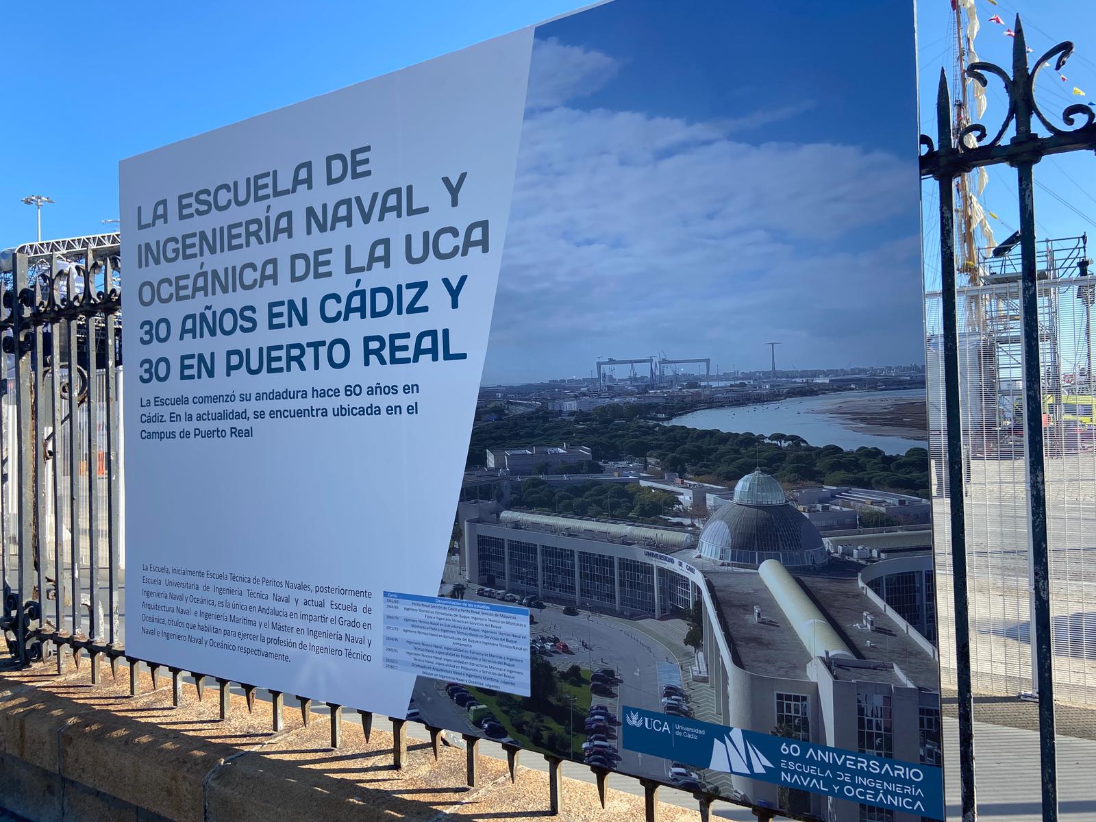 La verja del muelle de Cádiz albergará esta muestra conmemorativa hasta octubre. Una carpa informativa y los barcos Tartessos y UCAdiz completan su participación en el evento marino