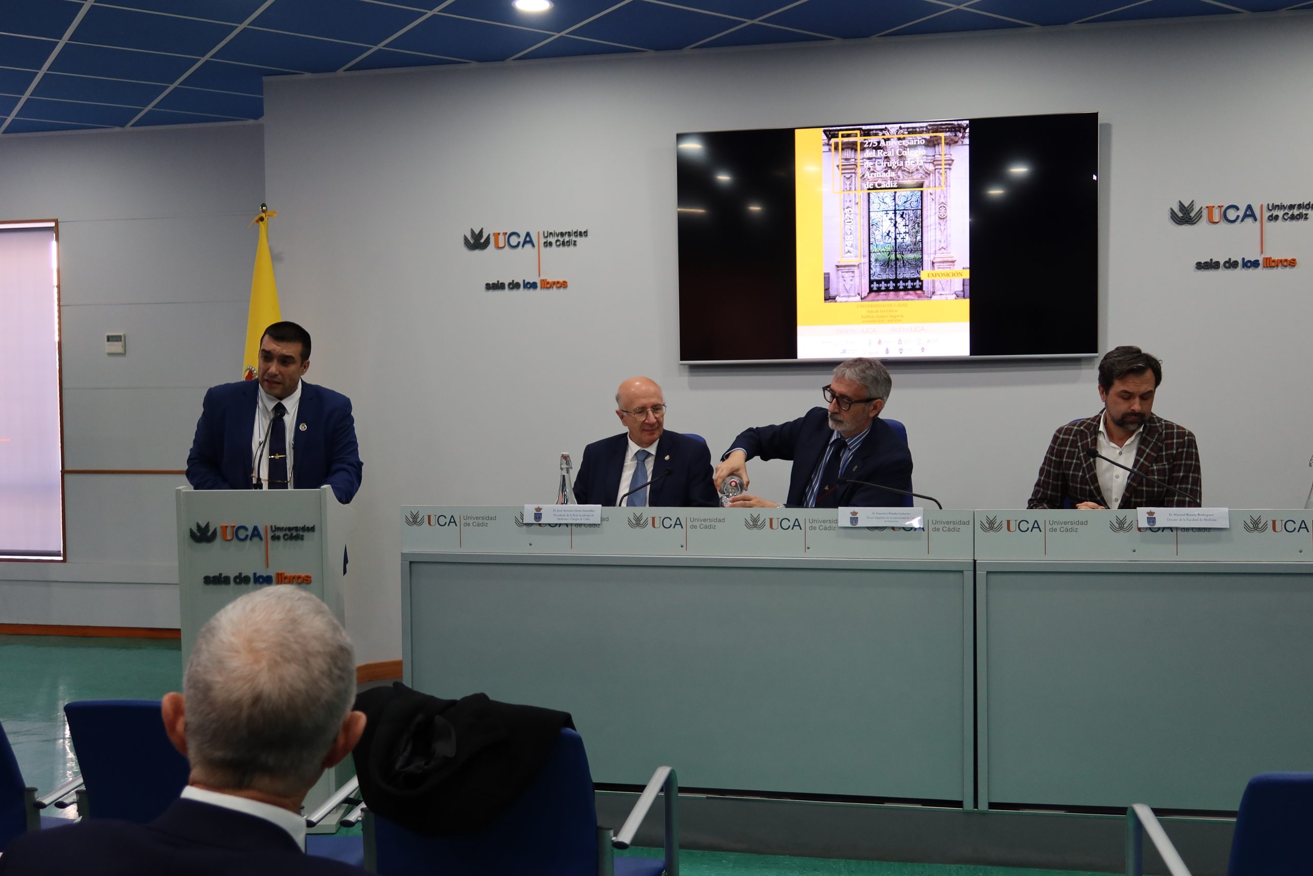Francisco Piniella ha agradecido a todas las personas y entidades que han trabajado con esmero y generosidad para que sea realidad esta exposición, ha comentado que “en la UCA nacimos antes de nacer. Esta afirmación delante de profesionales de la Medicina suena a provocación, pero constata una evidencia. Pertenecemos a una universidad creada hace 45 años, pero con tres siglos de historia. El punto de partida estuvo constituido, precisamente, por el nacimiento hace 275 años del Real Colegio de Cirugía de la Armada”. El rector de la institución académica ha explicado que “proteger, cuidar, custodiar y divulgar este legado es una responsabilidad de la Universidad de Cádiz, que se pone especialmente de manifiesto con la cuidada preparación de esta exposición. Se trata, además, de una actividad cultural y divulgativa que no es un verso suelto. No podía serlo. Se inscribe dentro de los actos que se vienen celebrando desde hace meses en el marco de la efeméride y que, desde el primer momento, cuentan con su apoyo y respaldo institucional”.